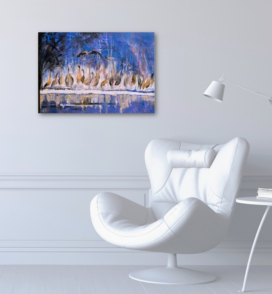 Ewa Mościszko - Żurawie manewry,  Obraz na płótnie 70x50x1cm