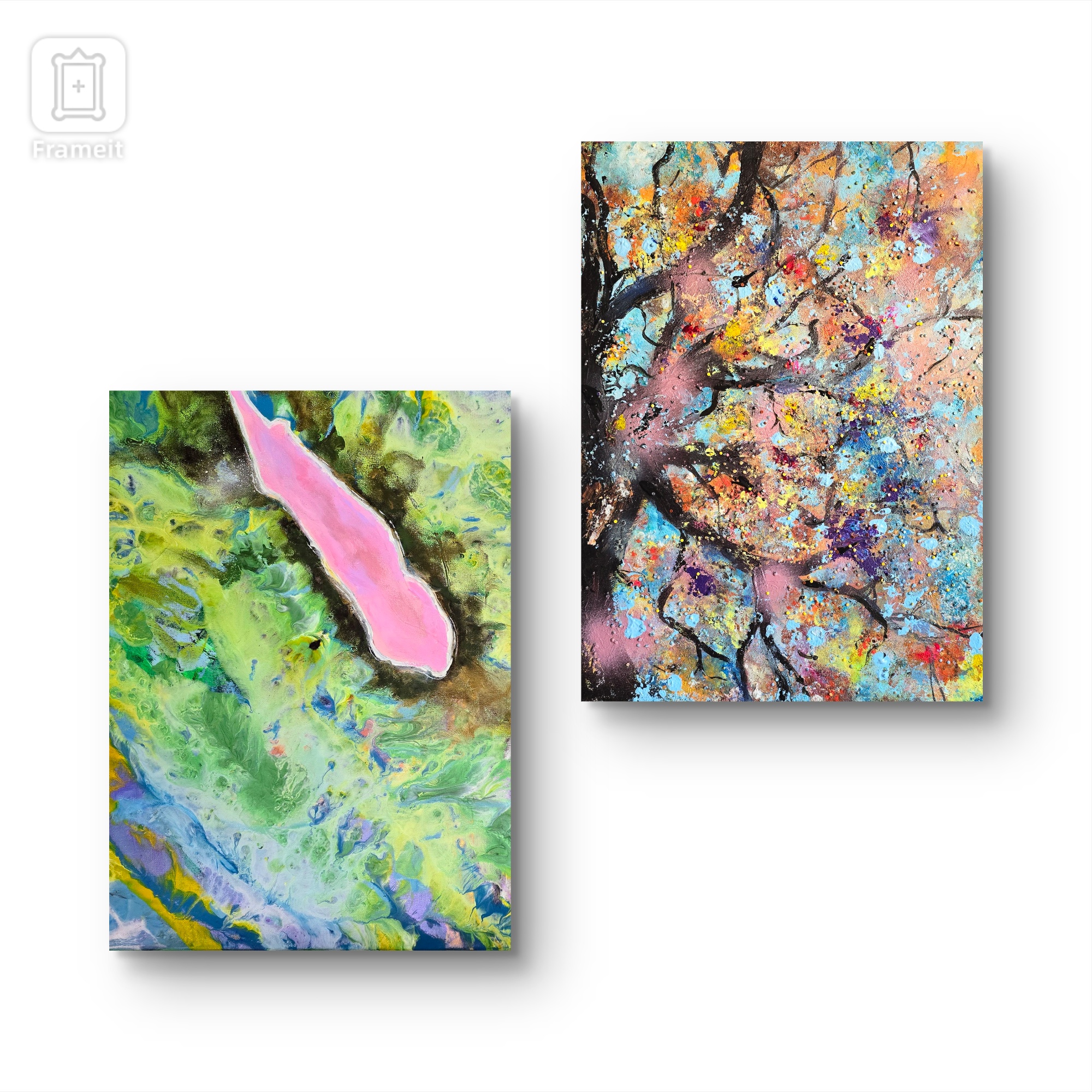 Kompozycja prac na płótnie, Hillier- Whitsunday i bukowe zauroczenie, 50x40x2 cm.