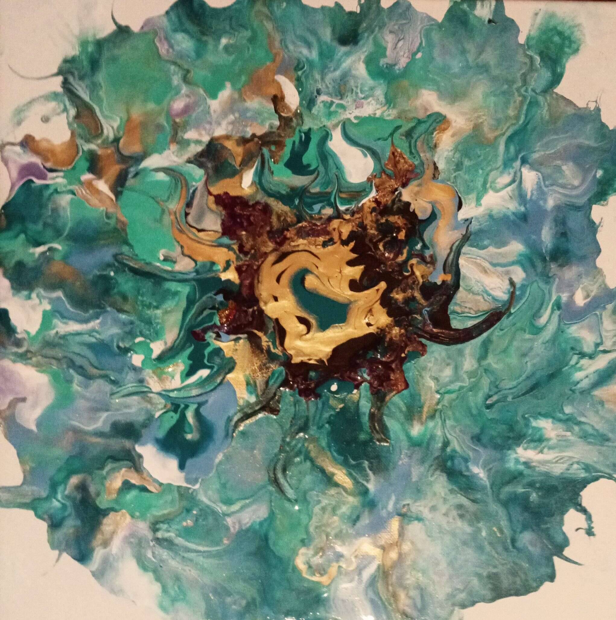 Obraz przedstawia kwiat w lekko impresjonistyczny sposób. Żywa kolorystyka, ale w jednej niebiesko-morskiej tonacji, unikatowa technika i podejście do tematu. Obraz ręcznie malowany na płótnie naciągniętym na sosnowy blejtram. Technika olej, akryl i tempera, Zastosowane produkty : farby Winston and Newton Great Britain oraz L&B France. Wymiary: 40x40x1 cm Rok powstania: 2023 Boki pomalowane w kolorze obrazu, obraz jest gotowy do powieszenia na ścianie. Sygnowany od frontu oraz podpisany i datowany na rewersie. Powlekany werniksem satynowym z lekkim połyskiem. Barwy mogą się nieznacznie różnić w zależności od oświetlenia, Obrazy wysyłam solidnie zabezpieczone, w kartonowym opakowaniu, gwarantującym bezpieczną dostawę do klienta.