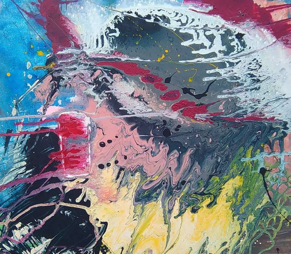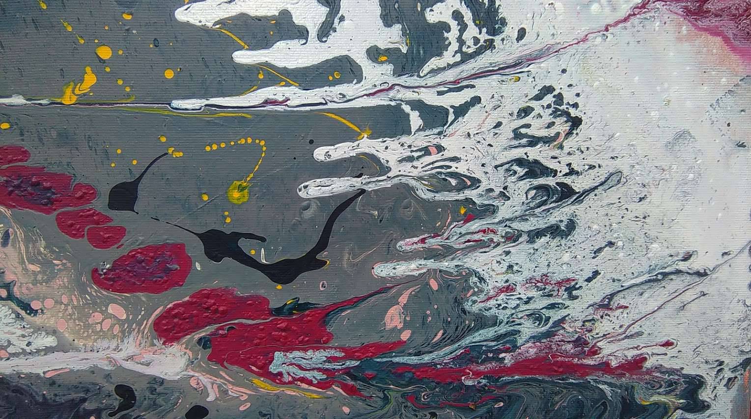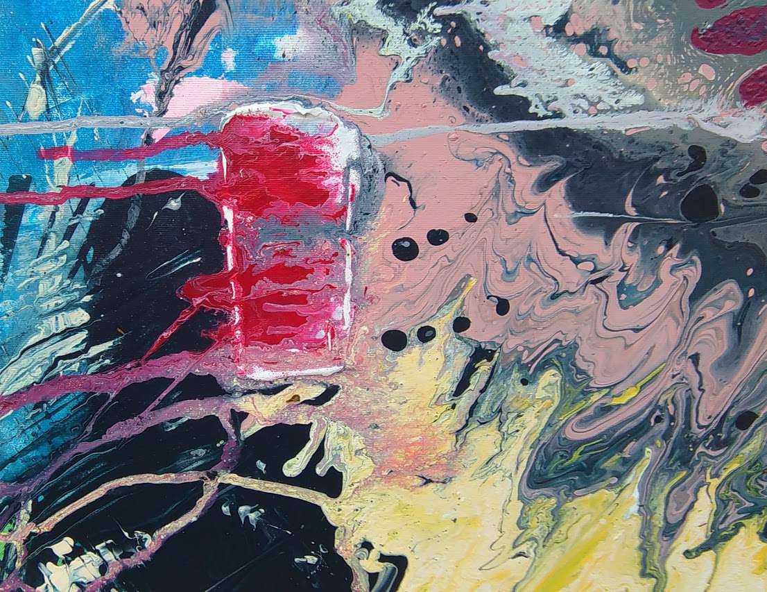 ... obraz zainspirowany kontrastem wynikającym z kształtu telefonu komórkowego i swobodnie kształtowaną plamą kolorystyczną...