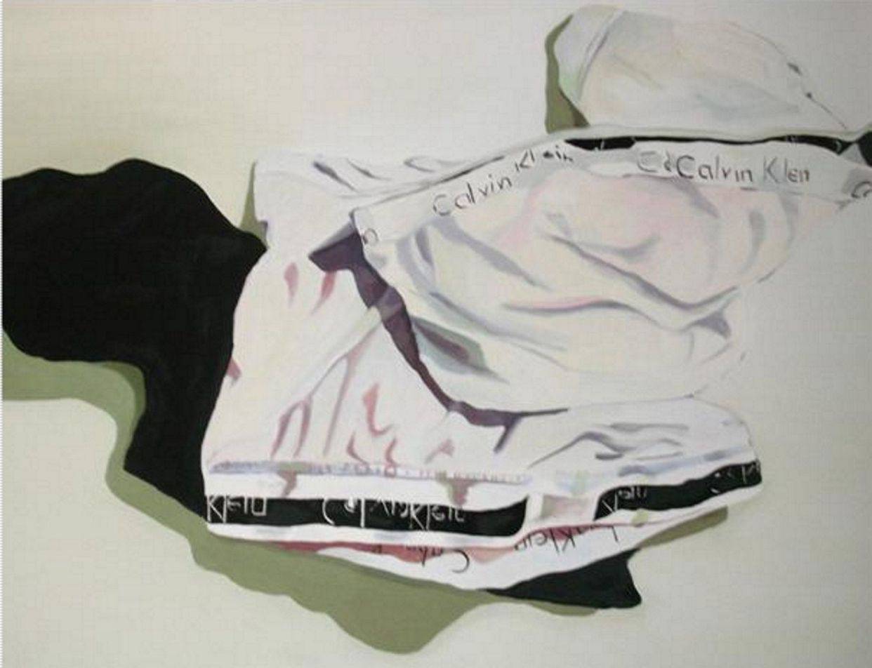 Obraz przedstawia stos delikatnie pogniecionych ubrań w odcieniach bieli, z subtelnym cieniem w ciemniejszych kolorach. Na pierwszy rzut oka, widać minimalistyczną elegancję, jakby te ubrania dopiero co zostały rzucone na podłogę. Wydają się być tak miękkie, że chce się w nie wtulić. Materiał promieniuje spokojem, a pastelowe refleksy dodają ciepła. Napis "Calvin Klein" widoczny na tle bieli to twist w stylu pop-art. Może to reklama? Meh, trudno powiedzieć. Artysta użył technik olejnych do oddania delikatności tkanin. To taki playful sposób pokazania zwykłych rzeczy w niecodziennym świetle. Obraz zyskuje na intymności i wyzwala uczucie spokoju. Wywołuje lekki uśmiech, bo przecież każdy z nas zna widok porzuconych na krześle ubrań. Interpretacje mogą być różne — może to nostalgiczne wspomnienia poranka lub leniwe popołudnie. A może jest w tym coś głębszego? Surprise me! Ten obraz mógłby przypominać mi o leniwych wakacjach, kiedy nie trzeba nic robić. I feel it.