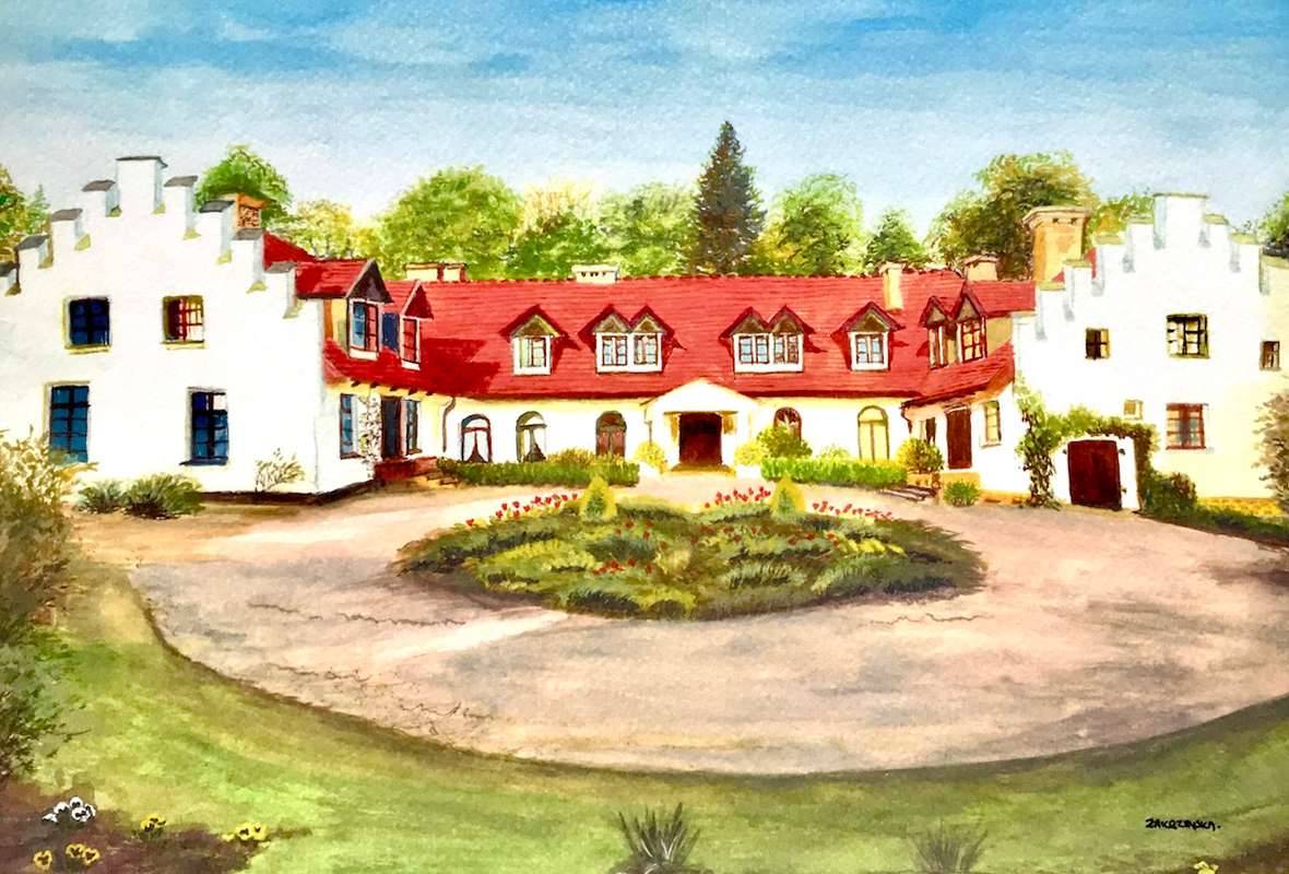 Piękna, unikatowa akwarela, przedstawiająca stary polski dwór w Krojantach, bardzo ciekawy pod względem architektonicznym. Malowana w stylu realistycznym, który zachwyca bogactwem detali, czystą żywą barwą i starannością wykonania. Obraz pasujący do pomieszczenia z klimatem, jaki sam w sobie stanowi. Można stworzyć kolekcje tematyczną zapoznając się z resztą moich prac na: www.sklepzobrazami.com.pl