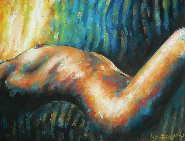 Obraz emanuje kolorami, które migoczą jak letnie poranki. Dominują odcienie zieleni, błękitu i pomarańczu, tworząc dynamiczny taniec barw. Na pierwszym planie widzimy zarys ciała, który wyłania się z abstrakcyjnego tła, jakby z chaosu wyłaniało się coś pięknego i harmonijnego. Nastrój obrazu jest spokojny, a jednocześnie pełen energii. Widać tu impresjonistyczny styl, gdzie pociągnięcia pędzla są wyraźne, a kolory mieszają się w oczach obserwatora. Artysta zdecydowanie użył technik, które sprawiają, że obraz wydaje się niemal trójwymiarowy. Ciepłe i zimne barwy ścierają się, ale te kontrasty tworzą niesamowity efekt. Obraz wywołuje uczucie zachwytu i spokoju. Spoglądając na niego, można poczuć się jak na plaży o zachodzie słońca, gdy światło igra na wodzie. "Wow, jakie to ładne," mogłoby powiedzieć dziecko. I właśnie taki efekt ma ten obraz. Jest to miejsce, gdzie każdy może znaleźć coś dla siebie. Może to być relaks po ciężkim dniu albo chwilowa ucieczka od rzeczywistości. To dzieło przypomina mi, jak ważne jest docenianie prostych chwil. Wyjątkowość obrazu polega na jego zdolności do przenoszenia widza w inny, bardziej kolorowy świat. A przy tym wszystkim - jest po prostu pretty.