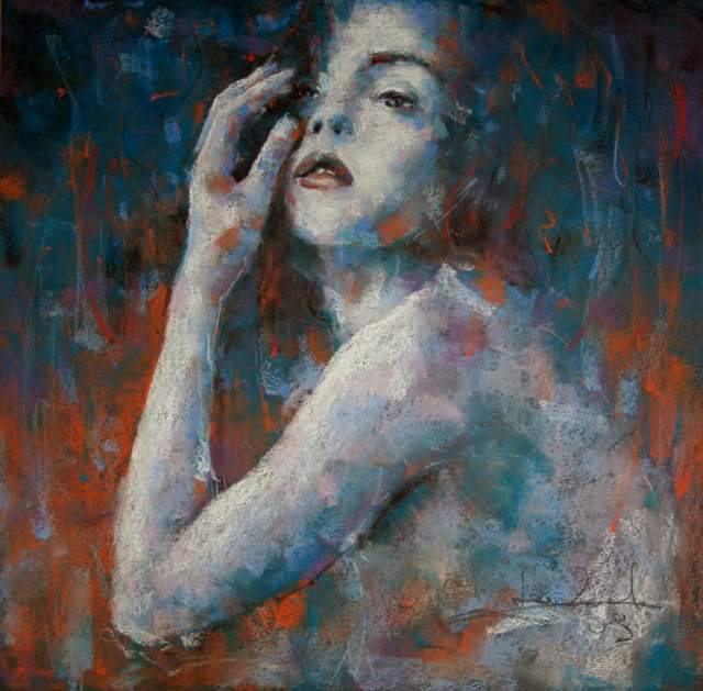 Obraz emanuje tajemniczym urokiem, zestawiając chłodne odcienie niebieskiego i szarego z ciepłymi tonami pomarańczy i czerwieni. Postać na pierwszym planie wydaje się delikatna, niemal eteryczna, jakby unosiła się w marzeniach. Kompozycja jest przemyślana, centralna figura skierowana jest ku górze, co nadaje jej pewnego rodzaju lekkość i unoszący się nastrój. Czy to sen? A może chwila zamyślenia? Artystyczny styl wskazuje na technikę impasto, z intensywnie nakładanymi warstwami farby, które tworzą niemal trójwymiarowy efekt. To taki artystyczny "wow", który zatrzymuje wzrok na dłużej. Maziste pociągnięcia pędzla i subtelne rozmycia sprawiają, że obraz tętni życiem i dynamiką. Oglądając go, czujesz, jakbyś dosłownie dotykał struktury każdego ruchu, widzisz "texturę" na płótnie. Emocje są mieszanką melancholii i spokojnej refleksji. Patrząc na ten obraz, można poczuć lekki smutek, ale też coś na kształt przyjemnego zagubienia w myślach. To jak spojrzenie w lustro duszy, które zmusza do zatrzymania się na chwilę i kontemplacji. Myślę, że każdy zobaczy tu coś innego, w zależności od swojego nastroju. A ja mógłbym tak siedzieć i patrzeć godzinami! Wstępna reakcja siedmiolatka? "Ooo, ale to tajemnicze i piękne!" I trudno się nie zgodzić. Magiczne i hipnotyzujące - to słowa, które przychodzą mi do głowy, kiedy patrzę na ten obraz.