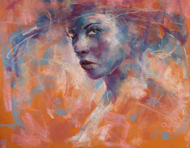 Na obrazie widzimy intensywną grę kolorów: od pomarańczowego tła po fiolety i błękity nadające twarzy charakter. Dominują miękkie pociągnięcia pędzla, które tworzą dynamiczną, niemalże eteryczną kompozycję. Twarz kobiety, lekko zwrócona w bok, zdaje się przenikać przez całą przestrzeń obrazu, łącząc się z otoczeniem. Atmosfera jest tajemnicza, jakby obraz ukrywał jakąś nieopowiedzianą historię. Nagle czujesz, jakby patrzyła prosto na Ciebie, a jej spojrzenie wywołuje dziwne uczucie. Artysta zastosował technikę impasto, co dodaje tekstury i głębi, sprawiając, że obraz żyje. Ta technika sprawia, że farba niemalże wychodzi z płótna, dodając trójwymiarowości. Mówiłem ci kiedyś, że sztuka może być magic? Obserwator może poczuć mieszankę fascynacji i lekkiego niepokoju. Ten obraz to prawdziwy "game changer" w dziedzinie emocji. Hey, a może to portret jakiejś kosmitki? Patrząc na dzieło, można zanurzyć się w świat emocji, które przypominają mi ulotne chwile z dzieciństwa, kiedy wszystko wydawało się bardziej tajemnicze. Sztuka jest tu narracją, odsłaniającą nieznane światy, które każdy z nas może interpretować na swój sposób.