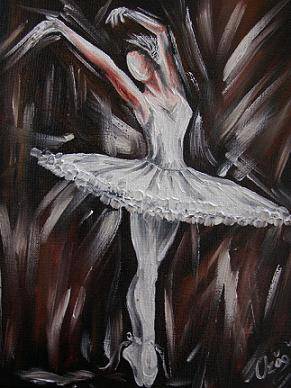 Na obrazie widzimy baletnicę, której sylwetka wprost unosi się w powietrzu, a ruchy wyglądają jakby były wykonane przy lekkim inspirującym śpiewie ptaków. Dominują biel i czerń, z akcentami delikatnych, brązowo-czerwonych pociągnięć. Tło jest dynamiczne, pełne energii, jakby artysta chciał uchwycić pełną życia atmosferę baletowego występu. Obraz tchnie elegancją i jednocześnie nostalgią. Czujesz to, prawda? Jakby czas zatrzymał się na chwilę. Styl artysty jest płynny, wykorzystane pociągnięcia pędzla są pewne, a jednocześnie subtelne. Technika, cóż, można powiedzieć, że artysta za pomocą mixu kolorów i kształtów stworzył efekt ruchu, capturing the essence of dance. Dla dziecka to mogła być bajkowa scena, ktoś tańczy jak wróżka! Obraz wywołuje poczucie zachwytu i lekkości, dosłownie zaprasza do tańca. Patrząc na to dzieło, serce zaczyna szybciej bić, a umysł wędruje w poszukiwaniu własnych marzeń i wspomnień.
