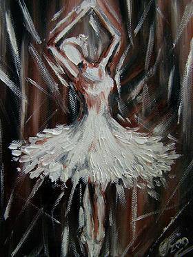 Na obrazie widzimy balerinę w dynamicznej pozie, uchwyconą w magicznym momencie tańca. Dominują barwy kontrastowe - ciepłe brązy przeplatają się z zimną bielą jej sukni. Kształty są rozmyte, co dodaje kompozycji ruchu i lekkości. Jednym słowem - captivating! Tło składa się z dynamicznych smug, które tworzą wrażenie dynamizmu i energii. Obraz emanuje tajemniczą atmosferą, jakby balerina była ulotnym snem, chwilą zamrożoną w czasie. Styl jest ekspresyjny, można dostrzec ślady pędzla, co dodaje energii i chaotyczności. Technika użyta przez artystę to impast, co nadaje teksturę i głębokość całej scenie. To dzieło może wzbudzać emocje zachwytu i nostalgii. Taniec jest pełen gracji, ale też delikatnej kruchości. Dla niektórych odbiorców obraz może być symbolem wolności i determinacji. Dzieci mogłyby powiedzieć, że balerina to mama w księżycowym świetle! Patrząc na niego, czuję jak moje serce lekko przyspiesza, a głowa wypełnia się myślami o pięknie chwil przemijających. Czy niesie to za sobą jakieś przesłanie? Może po prostu cieszmy się chwilą, póki trwa.