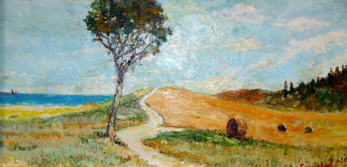 Na obrazie dominują pastelowe kolory: błękit nieba i żółcienie łagodnie przechodzące w zieleń trawy. Kompozycja prowadzi wzrok wzdłuż wijącej się ścieżki, która ginie gdzieś na horyzoncie, nadając scenie intrygujący charakter. Centralnie umiejscowione drzewo, może trochę samotne, dodaje pejzażowi uroku i symetrii. Obraz emanuje spokojem i nostalgiią. To prawie jakby chwila letniego popołudnia uchwycona na płótnie. Technika malarska sugeruje impastowy styl, z wyraźnymi pociągnięciami pędzla, które nadają teksturę i głębię. Czujesz lekki powiew wiatru, ciepło słońca na twarzy. Taki lazy day. Nastrój tego krajobrazu przyciąga uwagę swoją prostotą i szczerością. Może wywołać w odbiorcy poczucie tęsknoty za dawno minionym latem. Malowanie pełne jest emocji, które mogą przypominać dziecięce zabawy na łące. "A kto zrobi większą kulkę siana?" — mógłby zapytać mały odkrywca. Ten obraz to wyraz harmonii między naturą a człowiekiem. Zwraca uwagę na piękno codzienności i prostotę, stanowiąc jednocześnie zaproszenie do refleksji nad upływem czasu. It's amazing jak kilka barw może poruszyć wyobraźnię i uczucia. Stojąc przed tym dziełem, trudno nie zanurzyć się w jego spokóju i chwili zatrzymanej w czasie.