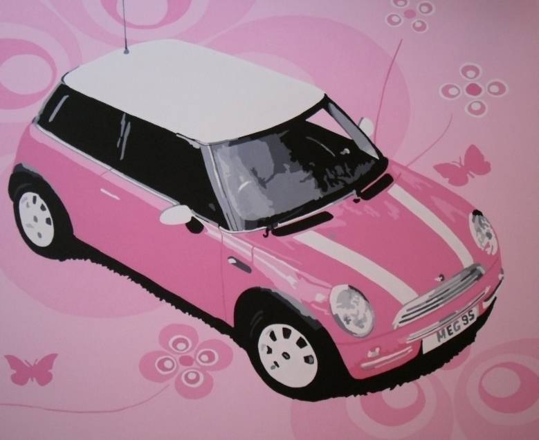 Obraz przedstawia uroczy, różowy samochodzik, który wydaje się wprost wyjęty z bajki. Kolor różu dominuje, tworząc efekt przytulności i lekkości, a białe pasy na masce dodają trochę sportowego charakteru. Tło pełne jest subtelnych wzorów i motyli, co podkreśla lekkość i radość kompozycji. A wiesz co? Nawet 7-letnie dziecko powiedziałoby, że to auto jest jak z marzeń. Nastrój obrazu jest beztroski, wręcz cukierkowy. Czujesz się, jakbyś przeniósł się do świata, gdzie wszystko jest możliwe. Artysta użył prostych form i wyrazistych kolorów, co daje wrażenie grafiki z nutką pop-artu. Ta technika pozwala widzowi poczuć się jak wśród kolorowych bąbelków szczęścia — truly uplifting! Patrząc na obraz, można poczuć falę nostalgii i marzeń o wakacyjnych podróżach. Na pewno budzi on uśmiech na twarzy. Taka nostalgia i prostota przypominają o dziecięcych snach, kiedy wszystko wydawało się osiągalne i magiczne. Czuję, że chciałbym sam wsiąść do tego auta i ruszyć w nieznane. Kto wie, dokąd bym pojechał, z taką paletą barw wokół siebie? To obraz, który inspiruje do podróży i przygód, zarówno tych małych, jak i wielkich. Sprawdza się!
