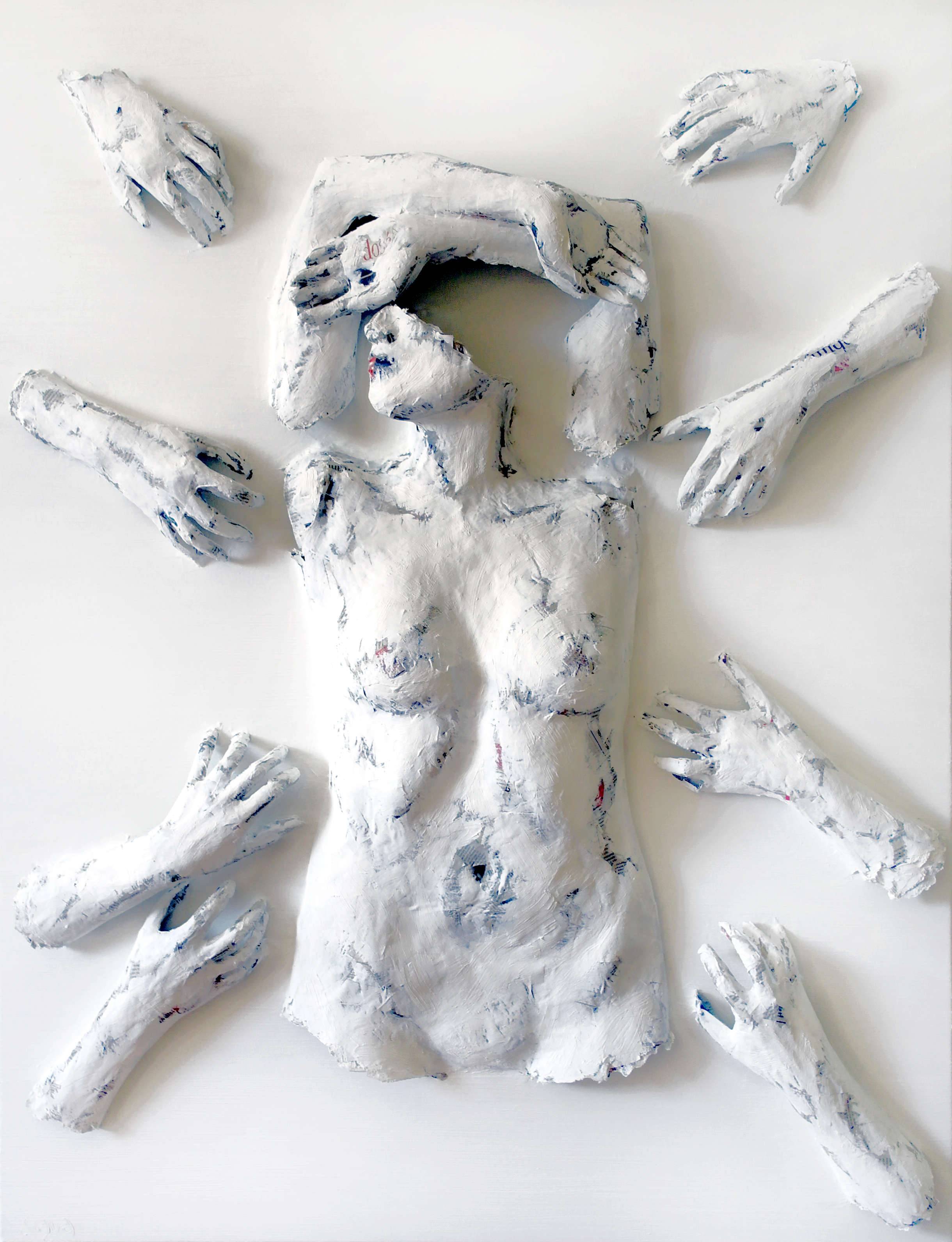 Trójwymiarowy obraz olejny wykonany na płótnie za pomocą techniki paper mache i pokryty białą farbą olejną. Charakteryzuje się znaczną wypukłością, co nadaje mu efektu trójwymiarowości. Monochromatyczność tego trójwymiarowego obrazu pozwala na łatwe dopasowanie do wnętrza i odpowiednie oświetlenie.