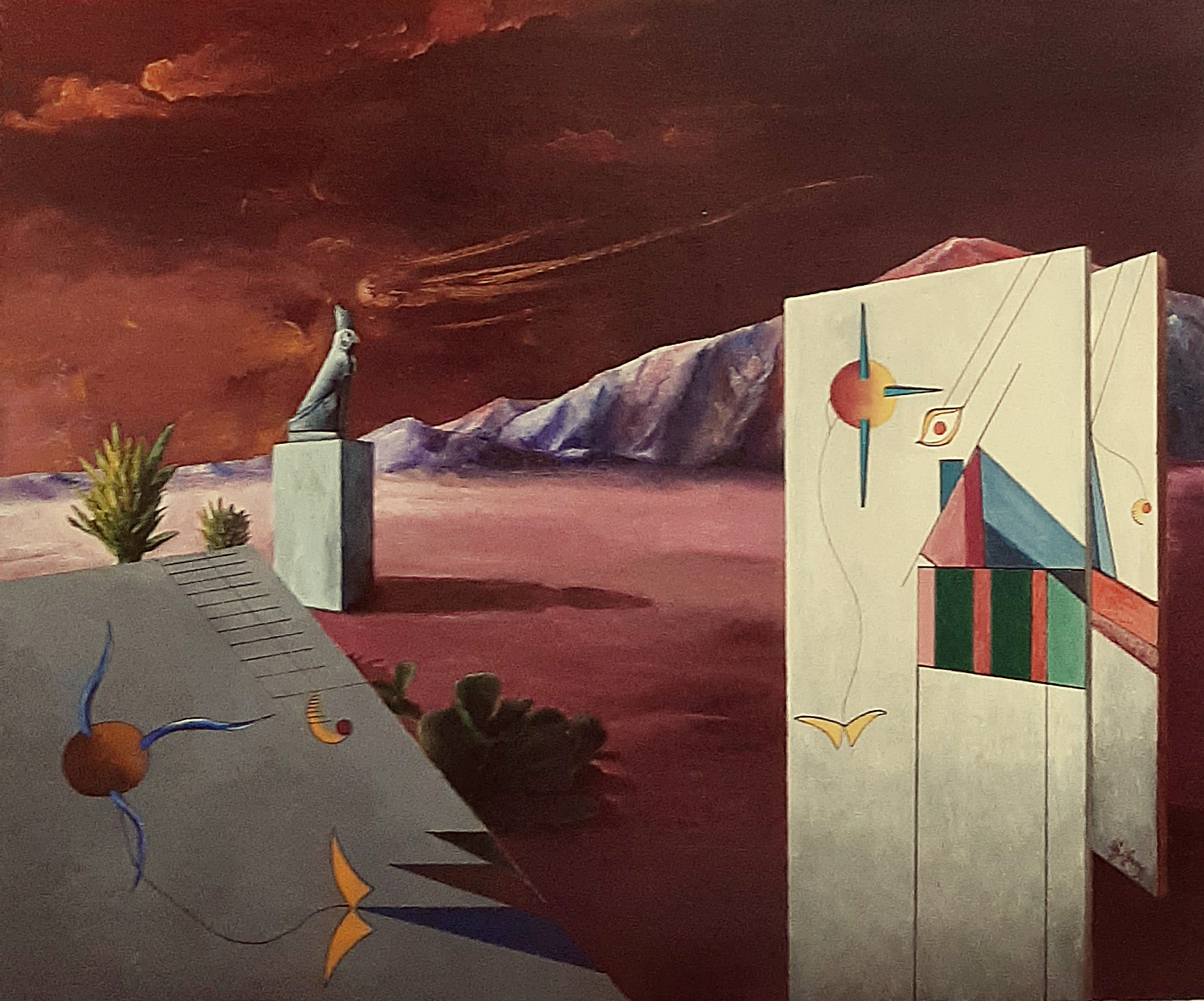opera primo periodo metafisico-surreale - oli, acrilico, china su cartone telato Senza cornice - A richiesta si possono fornire altre foto