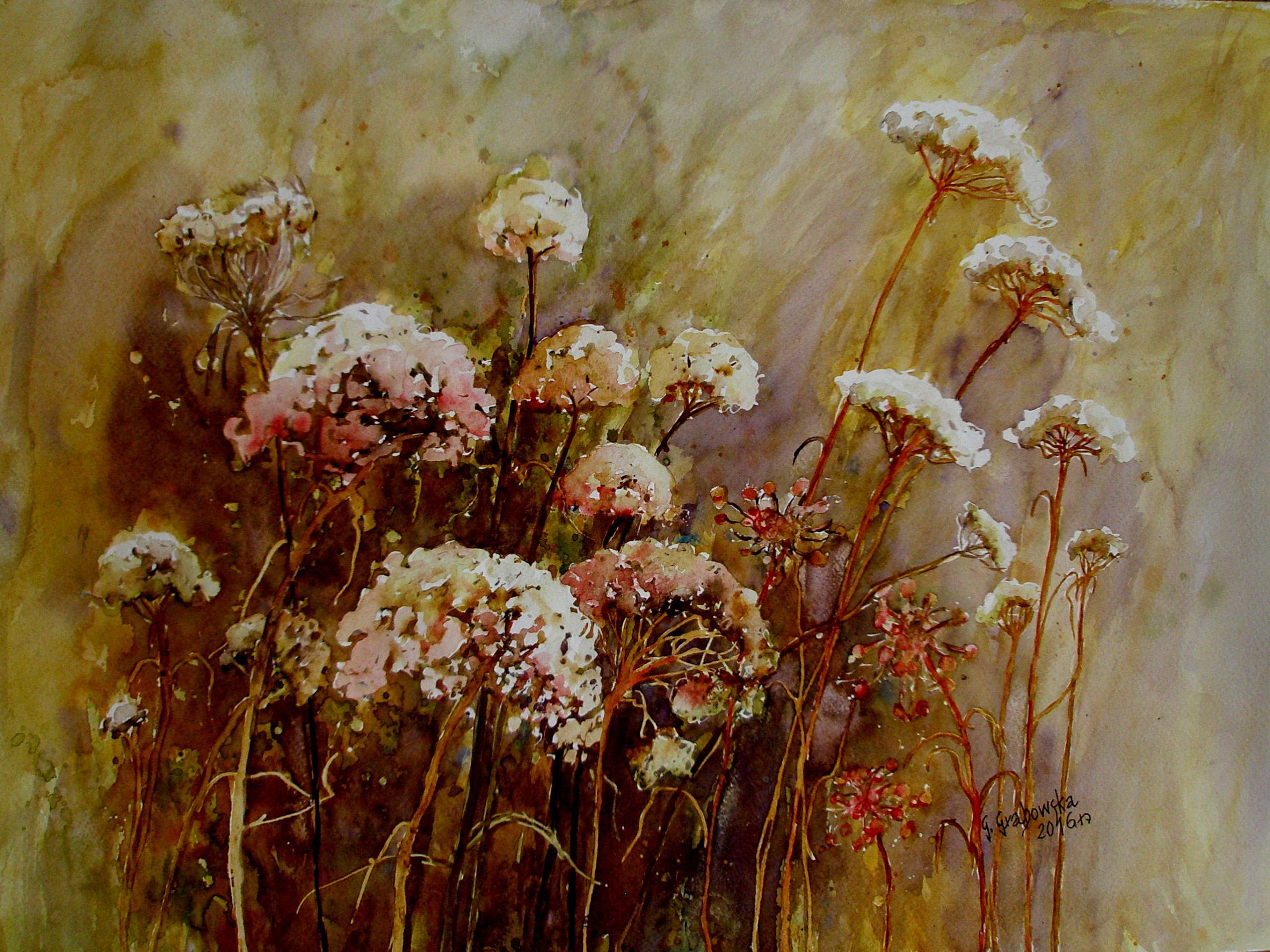 Bardzo subtelna kompozycja kwiatowa w neutralnych delikatnych ramach.