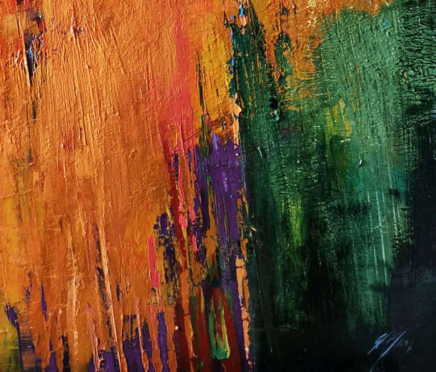 Prace Grażyny inspirowane są naturą, łąkami i dziką przyrodą. Wykorzystuje żywe kolory, gęstą fakturę i wyrazisty gest.