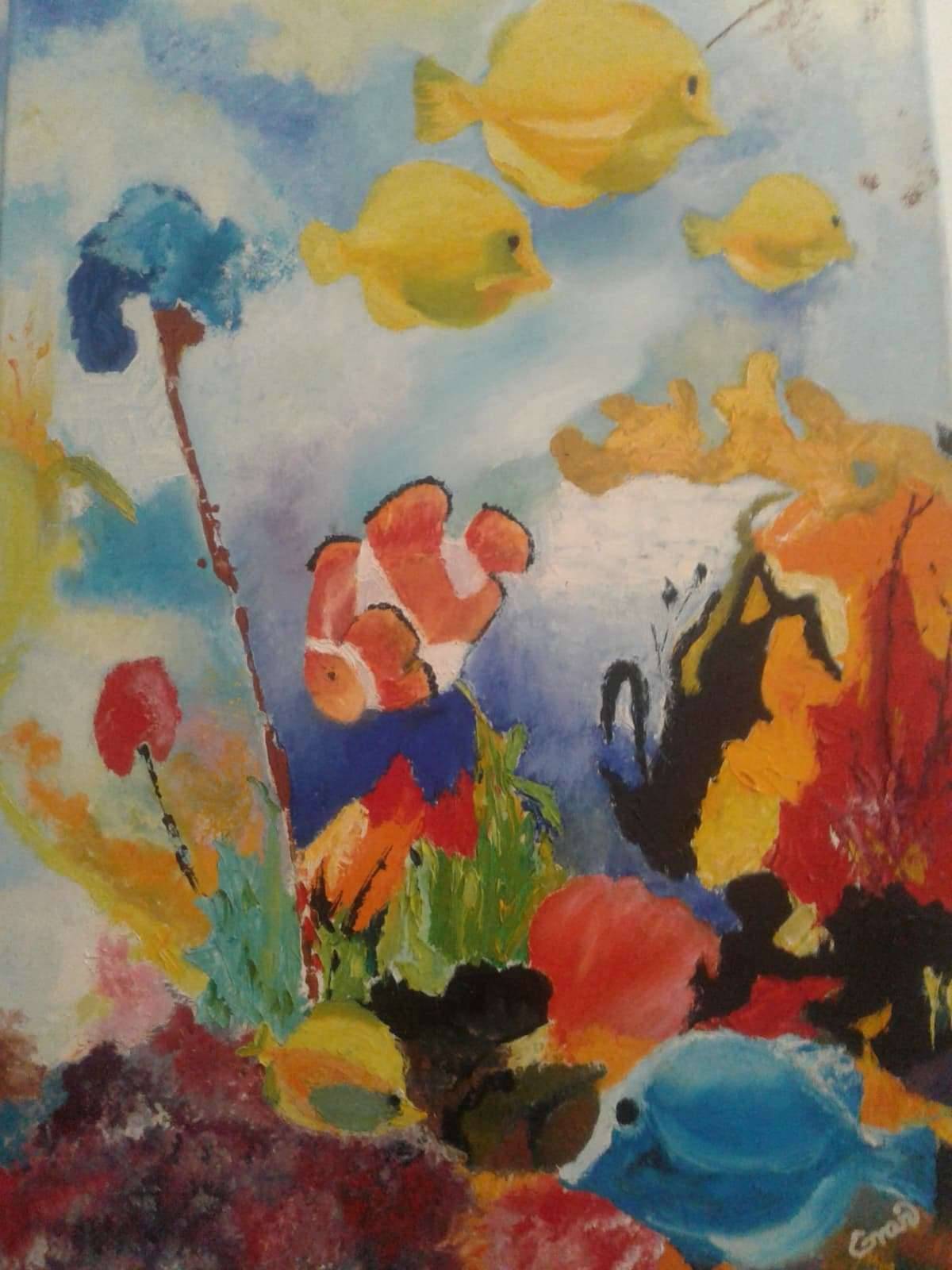 Otchłań oceanu dorodność enigmatyczna zawsze mnie intryguje . Obraz malowany szpachla widoczna struktura .
