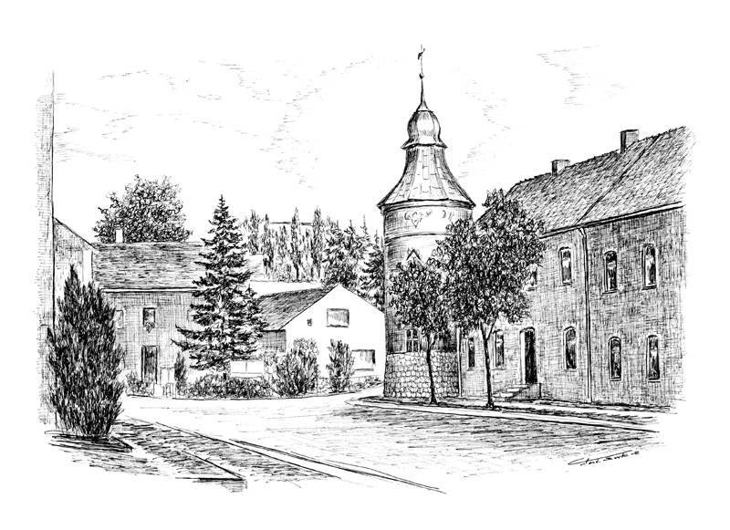 Rysunek Baszty Północnej na Rynku w Polskiej Cerekwi (tusz, piórko) - wykonany na zamówienie UG w Polskiej Cerekwi Oryginał rysunku podarowano Markowi Torzewskiemu podczas jubileuszowego koncertu z okazji 25 lecia pracy artystycznej - wybitnego tenora scen światowych – Art Cup 2008. Zakrzów
