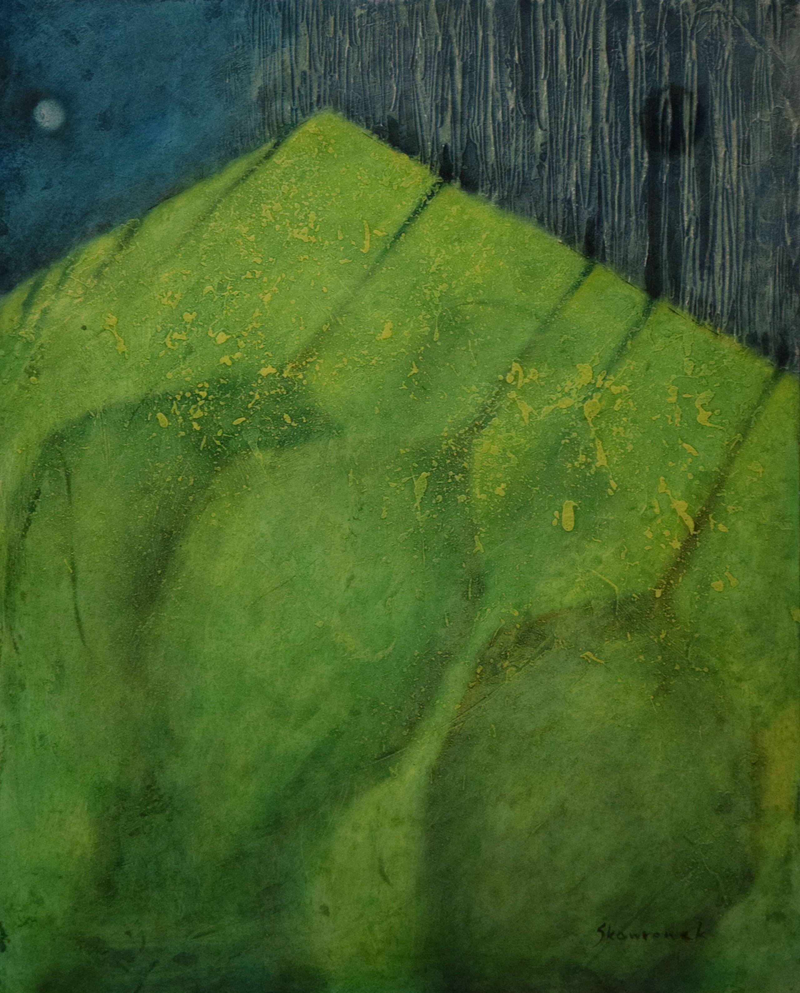 Obraz emanuje świeżością wiosennej łąki, pełnej intensywnych, zielonych odcieni, które tchną życie i optymizm w każde spojrzenie. Feeria kolorów – od głębokiej zieleni po delikatne, jasne nuty – tworzy harmonijną kompozycję, przypominającą rozległe pola pod błękitnym niebem. Tło maluje się granicą między ciemnym granatem a lekkim błękitem, dodając nieco tajemniczości. Kompozycja jest dynamiczna, lecz zarazem spokojna, co tworzy intrygujący kontrast. Technika artystyczna jest pełna swobody – rozbryzgi farby imitują teksturę trawy, jakby wiatr przedzierał się przez wzgórza. Czuję echo słów „Wind whispers through”. Ten obraz można by nazwać po prostu „zieloną melodią”, tak śpiewający wydaje się w swojej prostocie. Dla 7-latka to po prostu piękny świat, gdzie można się schować i bawić. Czujesz tę przestrzeń i wolność? Moje serce skacze z radości na widok takiej żywotności. Jest coś magicznego w tej kompozycji, co nie pozwala oderwać oczu i zmusza do refleksji nad pięknem przyrody.