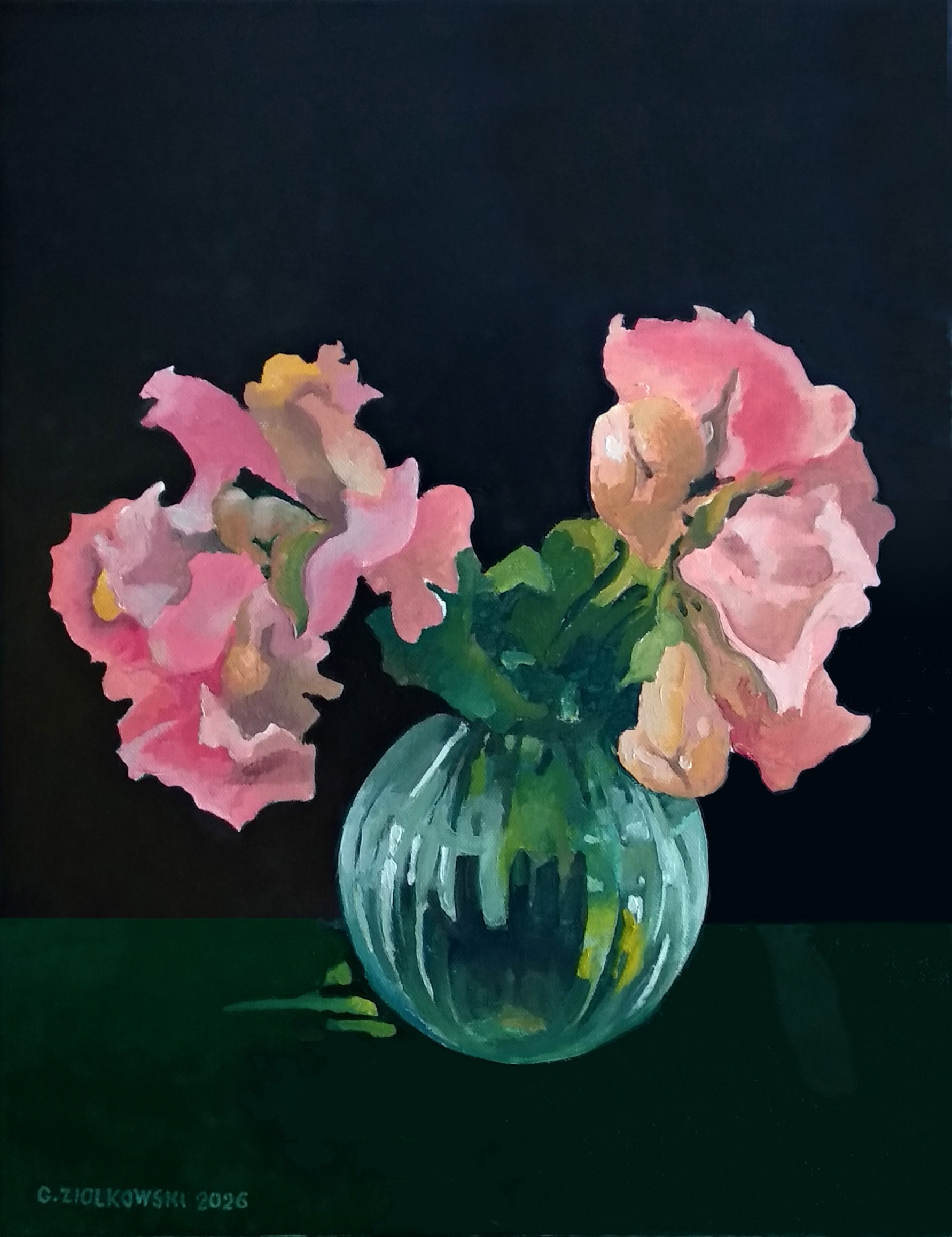 Poczuj tętniący blask „Lwich paszczy”, urzekającego obrazu olejnego na płótnie. Ta wykwintna martwa natura ukazuje delikatne piękno różowych kwiatów lwiej paszczy, zebranych w przezroczystym szklanym dzbanku, spoczywających na soczyście zielonym stole. Mistrzowskie wykorzystanie realizmu przez artystę ożywia te kwiaty, a ich delikatne płatki zdają się być gotowe do rozwinięcia na Twoich oczach. Głębokie, niemal czarne tło tworzy uderzający kontrast, pozwalając świetlistemu różowi lwich paszczy prawdziwie promieniować. Ta gra światła i cienia nadaje scenie głębi i intymności, wciągając Cię w cichą elegancję tej kompozycji kwiatowej. To dzieło średniej wielkości, idealne do dodania odrobiny naturalnego splendoru do każdego pomieszczenia. Wyobraź sobie, jak to dzieło zdobi Twój przedpokój, wnosząc powitalną eksplozję koloru, lub może jako centralny punkt w Twoim salonie, dodając mu wyrafinowanej, a zarazem żywej atmosfery. Realistyczny styl sprawia, że ​​jest to wszechstronny dodatek do różnych aranżacji wnętrz. Wnieś nieprzemijający urok natury do swojego wnętrza dzięki tej pięknej interpretacji lwich paszczy.