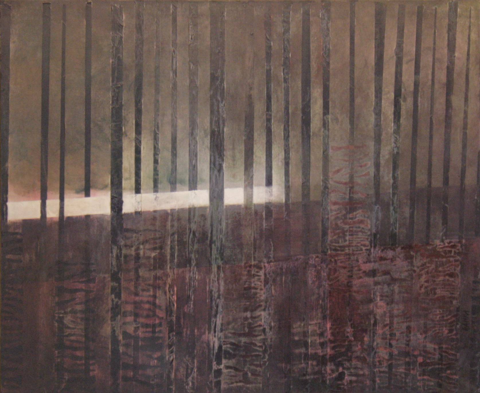 Obraz przedstawia tajemniczy las, w którym cienkie, ciemne linie przypominające pnie drzew, wnikają w mroczne tło. Kolory to głównie odcienie brązu, szarości i przenikający przez nie świetlny pas. Są one subtelnie przenikające się nawzajem, tworząc efekt głębi. Kompozycja tego dzieła jest zarówno prosta, jak i hipnotyzująca. Nastrój? Jest trochę jak ze snu, gdzieś na granicy jawy i marzenia. Może to dzieło sugeruje wspomnienia z dzieciństwa, kiedy lasy były nieskończonym światem przygód i tajemnic. Artysta zastosował techniki mieszane, prawdopodobnie akryl lub olej, dzięki czemu powierzchnia obrazu wydaje się mieć teksturę. To tak, jakby każda linia była osobnym wymiarem, który można „poczuć” dotykiem. Wzrok wędruje po obrazie, szukając ukrytych znaczeń, które pozostają nieuchwytne. Ten obraz to emocjonalne rollercoaster – można poczuć spokój, ale też nutę niepokoju. Moje myśli dryfują do lasu, gdzie biegałem jako dziecko, szukając skarbów. To takie magiczne miejsce. Każde spojrzenie na ten obraz wywołuje coś w rodzaju "wow" efektu, odkrywając nowe szczegóły za każdym razem. Może to własnie ten efekt magicznego lasu, który kusi nieskończoną ilością interpretacji. Co za intrygujący kawałek sztuki!