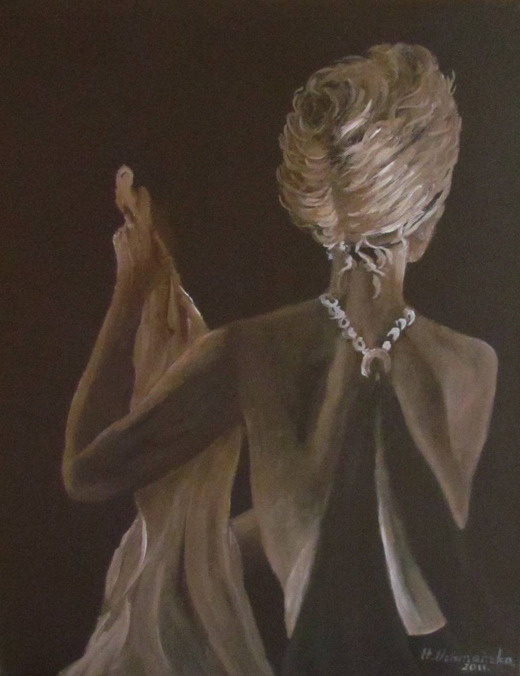 werniksowany, sygnowany, oprawiony w ramę w kolorze patynowanego srebra. cena z ramą
