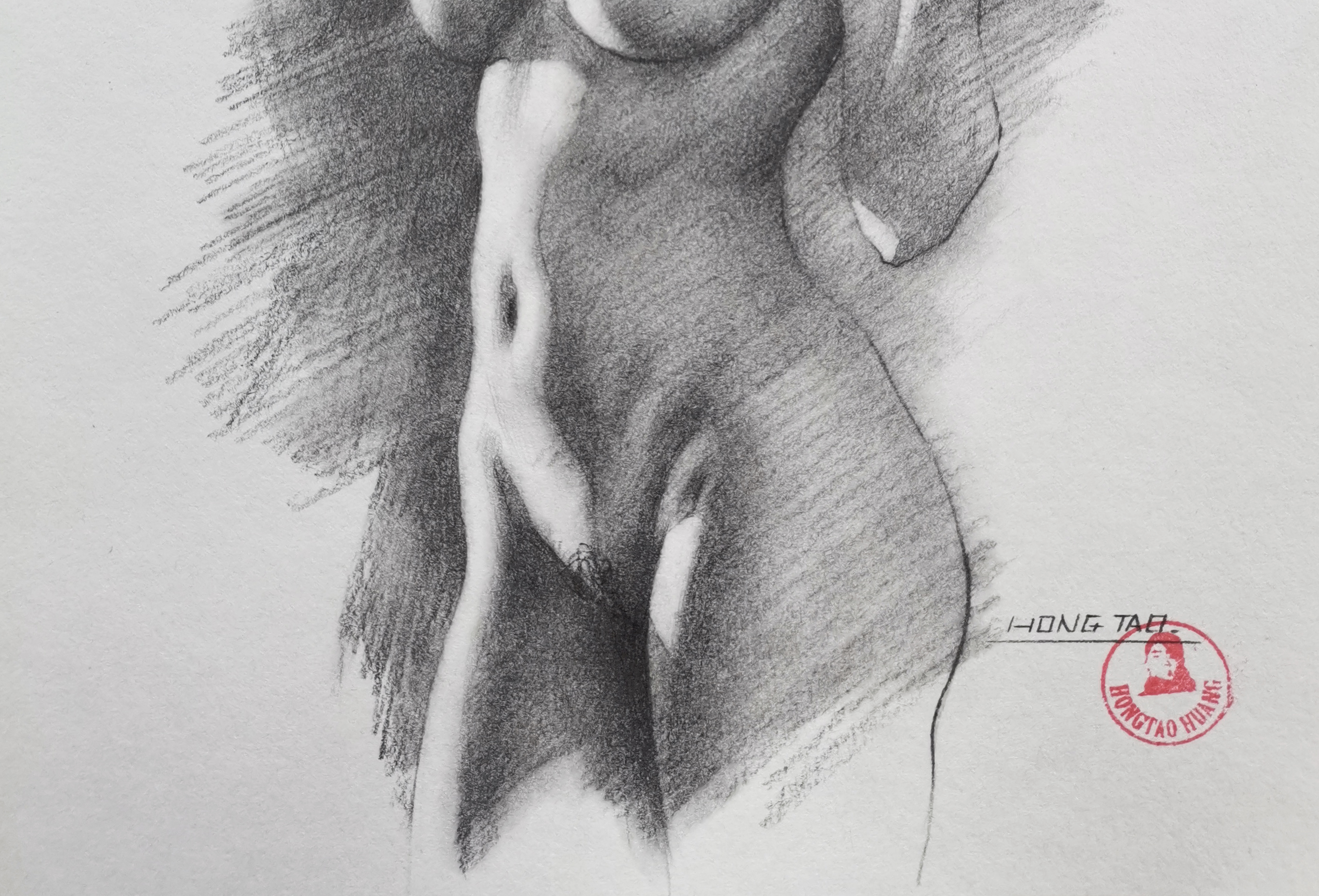 Drawing on paper (Marie's 160g ) Size:19*27 cm This original drawing has been lightly sprayed with fixative. If stored correctly or framed, this drawing will last for generations. This artwork is unstretched and unframed for selling. Also comes with Certificate of Authenticity.