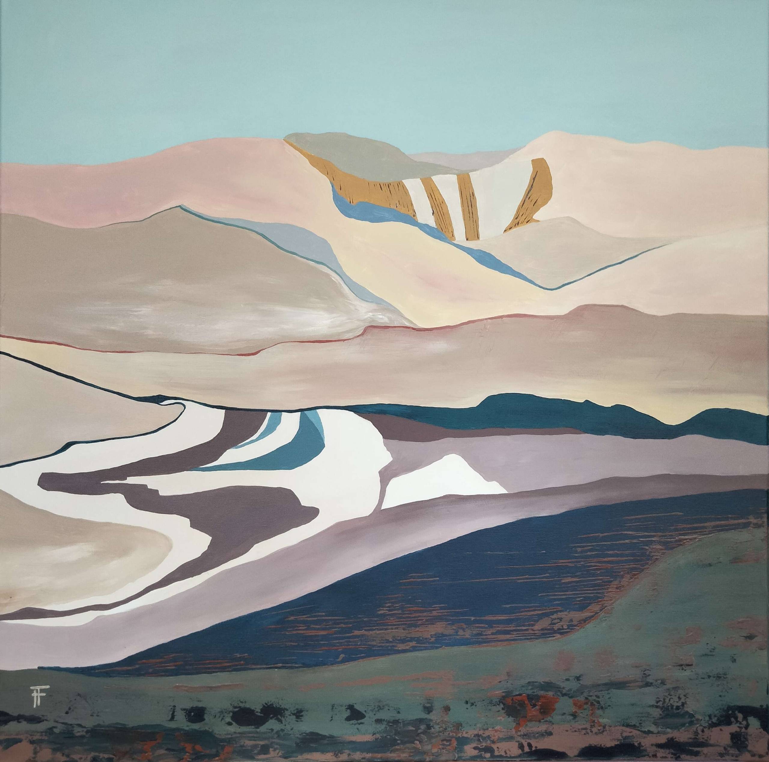 Obraz jest jak piękny sen. Subtelne pastelowe kolory otulają wzgórza i doliny. W delikatnym błękicie nieba mieszają się beże i różne odcienie brązu. Cała kompozycja przywołuje spokój i harmonię, przemawiając cichym szeptem natury. Linie są płynne i miękkie, a kształty przypominają fale w krajobrazie. To coś jak magiczny moment zatrzymany w czasie. Ten obraz emanuje spokojem, ale jest też coś niewytłumaczalnie marzycielskiego. Tak jakby artysta chciał, byśmy się zgubili w tym krajobrazie i znaleźli coś... nieuchwytnego. Styl jest prosty, minimalistyczny, ale w swojej prostocie naprawdę captivating. To nie jest jakiś tam obraz, to ma duszę. Może puknąć do naszego serca i wywołać uczucie nostalgii za miejscami, gdzie chyba jeszcze nigdy nie byliśmy. Może się wydaje, że to dziwne, ale ja tak to czuję. Patrząc na to dzieło, myślę, że "Chciałbym tam mieszkać". Jak dziecko, które chce się bawić i biegać po tych malowanych wzgórzach. Taki piękny moment, zamienia wszystko w magiczne miejsce. Tak, ten landschaft to prawdziwy hit!