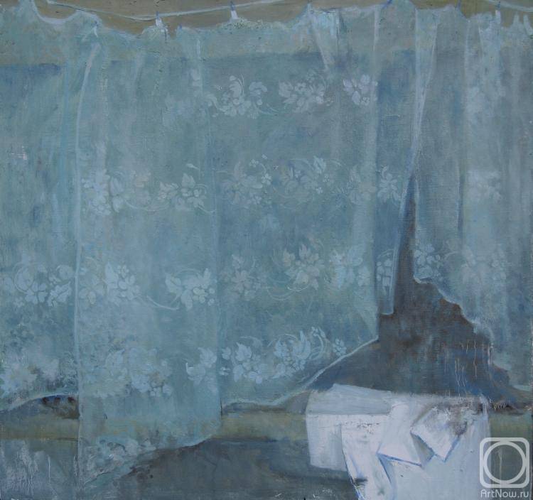 Delikatny błękit zasłon na obrazie otula wnętrze jak spokojna chmura. Kompozycja wydaje się minimalistyczna, ale skrywa subtelne detale. Kwiatowe wzory na tkaninie przyciągają wzrok, dodając całości delikatności i vintage'owego uroku. Atmosfera jest melancholijna, jakby czas stanął w miejscu i pozwalał na chwilę zadumy. Może to działa na wyobraźnię, powodując że myślimy o starszym domu pełnym wspomnień. Styl dzieła jest raczej impresjonistyczny, z miłym dla oka rozmyciem kształtów i harmonijnością form. Można wyczuć, że artysta eksperymentował z fakturą farby, nakładając ją warstwowo. Wywołuje to uczucie spokoju i nostalgii. Obraz sprawia, że myślisz "home", choć nie jest to konkretne miejsce. Czasem prace takie wywołują refleksje nad przemijaniem i ulotnością chwil. Dzieci powiedziałyby: zasłonki są takie ładne, pachną jak babcia! To niezwykłe, jak prosty motyw uchwycony na płótnie potrafi rozbudzić tyle emocji i refleksji. Może to sprawiać, że przystaniesz na chwilę i zastanowisz się, jak to jest — takie codzienne piękno, które czasem umyka w pośpiechu dnia.