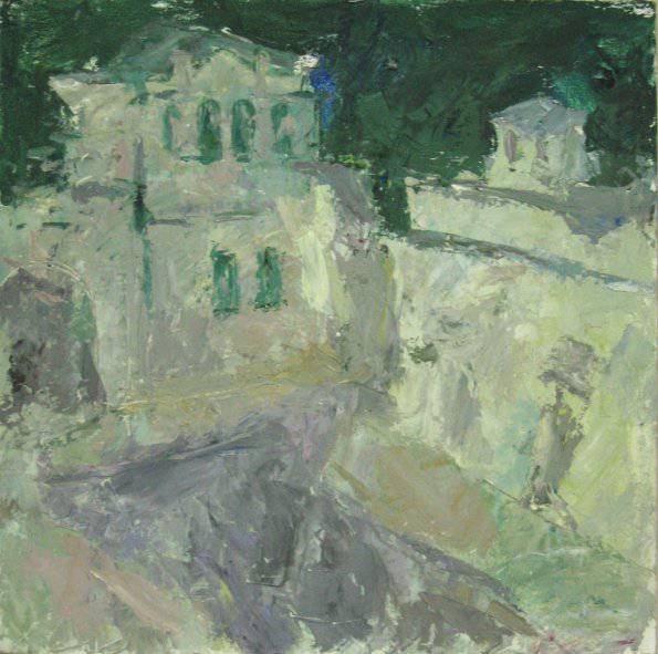 Na obrazie widzimy zatopiony w delikatnych tonacjach zieleni i szarości pejzaż, który wydaje się nieco zamglony, jakby skąpany w porannej rosie. Struktury budynków majaczą w tle, sprawiając wrażenie ulotnych i nieco odrealnionych. Kompozycja jest nieco chaotyczna, jakby artysta chciał uchwycić moment w ruchu. Farba nałożona jest grubymi pociągnięciami, co dodaje faktury i głębi. Atmosfera jest spokojna, ale i tajemnicza, jakby miasteczko skrywało swoje sekrety. Styl przypomina impresjonizm, z naciskiem na uchwycenie światła i tekstur, które przywołują wspomnienia z dzieciństwa. Moja babcia miała takie zdjęcie na ścianie. Obraz może wywoływać u odbiorcy nostalgię i refleksję nad przemijaniem czasu. Coś takiego jak whisper of bygone days. Wprowadza w nastrój zadumy, ale i pewnej nadziei na przyszłość. Obraz zachęca do zanurzenia się w jego głębi i poszukiwania własnych interpretacji. Po prostu chce się tam być.