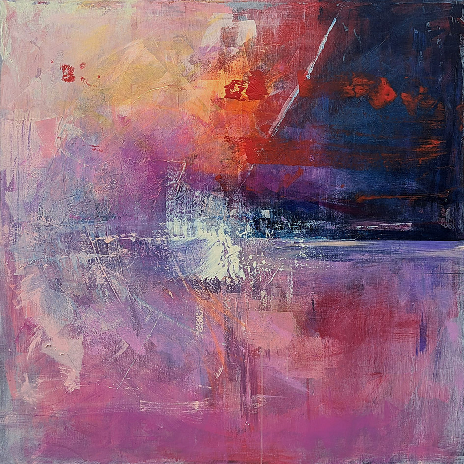 „Przebudzenie przestrzeni” to malarska podróż przez intensywne emocje, ukazująca prawdziwą eksplozję kolorów. W obrazie dominują odcienie pudrowego różu, które stopniowo przechodzą w purpurę, granaty i pomarańcze, tworząc kompozycję pełną głębi. Całość jest przeplatająca się dynamicznymi pociągnięciami pędzla i subtelnymi przejściami tonalnymi. Kompozycja jest pełna energii, tworząc atmosferę tajemnicy i marzeń, gdzie przestrzeń jest nieustannie w ruchu, jakby pełna niewypowiedzianych historii. Obraz nie tylko przyciąga wzrok, ale także wzbudza emocje. Artysta bawi się kolorem i formą, tworząc przestrzeń do osobistych interpretacji. Może to być poranek, który oświetla tajemniczy świat, albo burza ukryta w sercu. Każdy może dostrzec coś innego, co czyni to dzieło niezwykle osobistym i magicznym. „Przebudzenie przestrzeni” zachęca do zanurzenia się w tej kalejdoskopowej przestrzeni, gdzie kształty i linie tworzą niesamowity taniec kolorów. Technika artystyczna ujawnia zastosowanie bogatej faktury, co dodaje dziełu głębi i wymiaru. Obraz pulsuje energią i ruchem, wciągając widza w swoje abstrakcyjne przestrzenie, które wydają się nieustannie przekształcać. To jak chwila zatrzymana w czasie, gdzie emocje i wspomnienia mieszają się z nieuchwytną przestrzenią. Patrząc na obraz, czuję, że jest to dzieło, które zostaje z widzem na dłużej – to prawdziwe „wow moment”, który porusza serce i wyobraźnię. Można poczuć go całym sobą i znaleźć w nim chwilę spokoju w morzu barw.