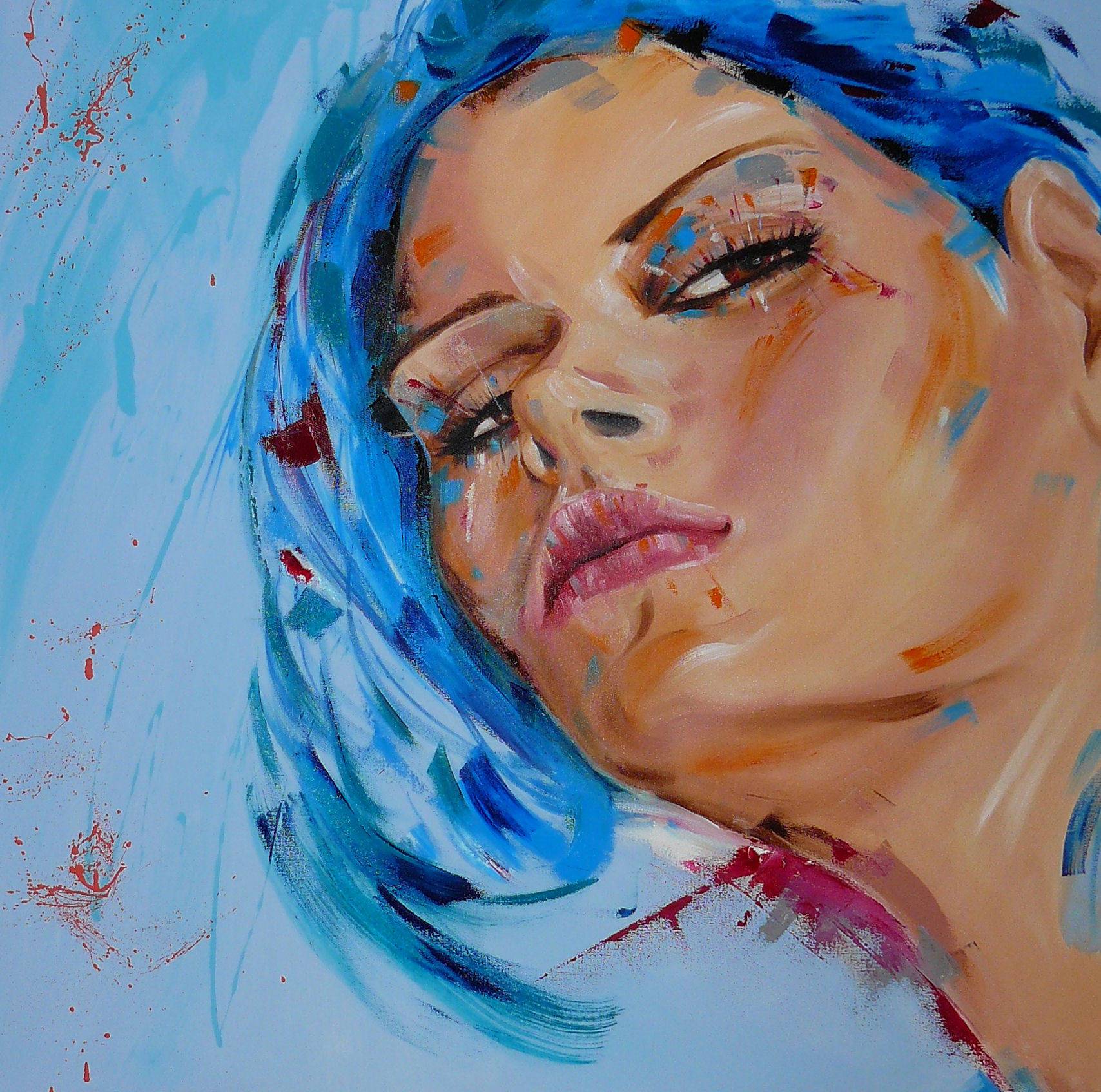 Obraz wykonany techniką mieszaną (olej, akryl( na płótnie. Posiada zamalowane boki, sygnowany na odwrocie imieniem i nazwiskiem autorki
