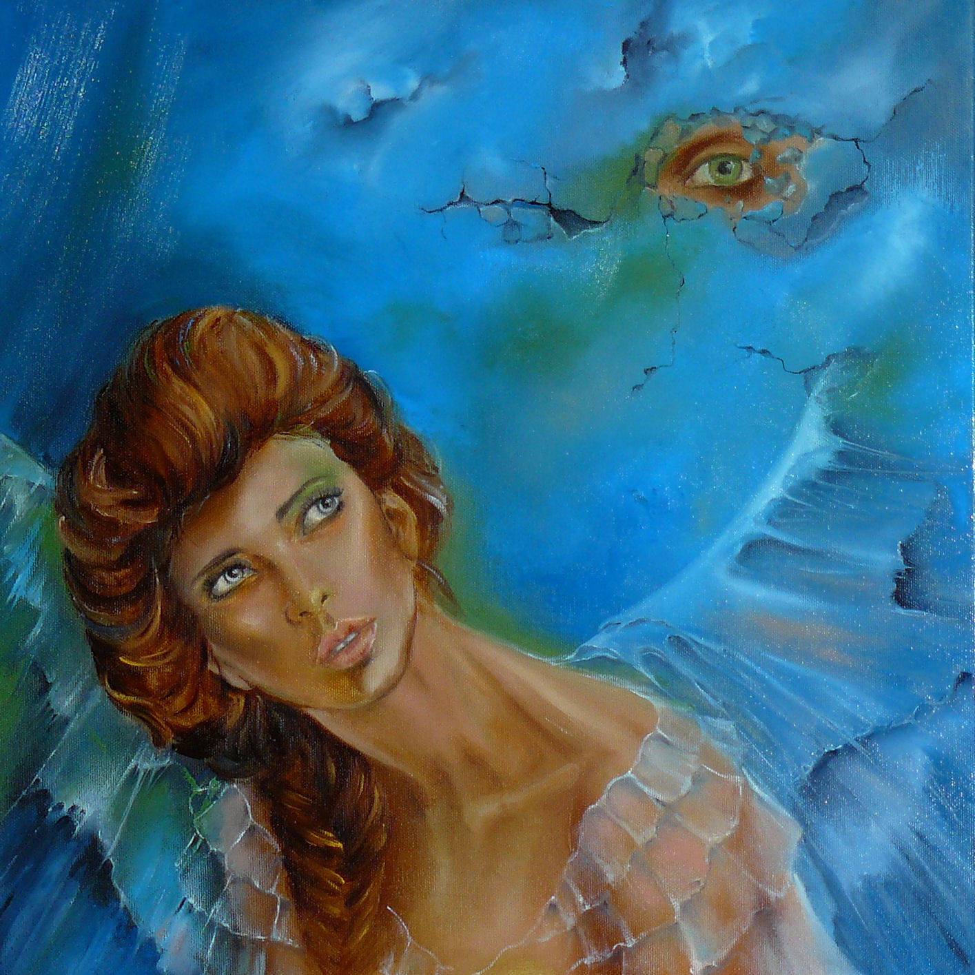 Obraz olejny na płótnie, posiada zamalowane boki, rozmiar 50x50 cm, rok 2017, sygnowany inicjałami autorki.