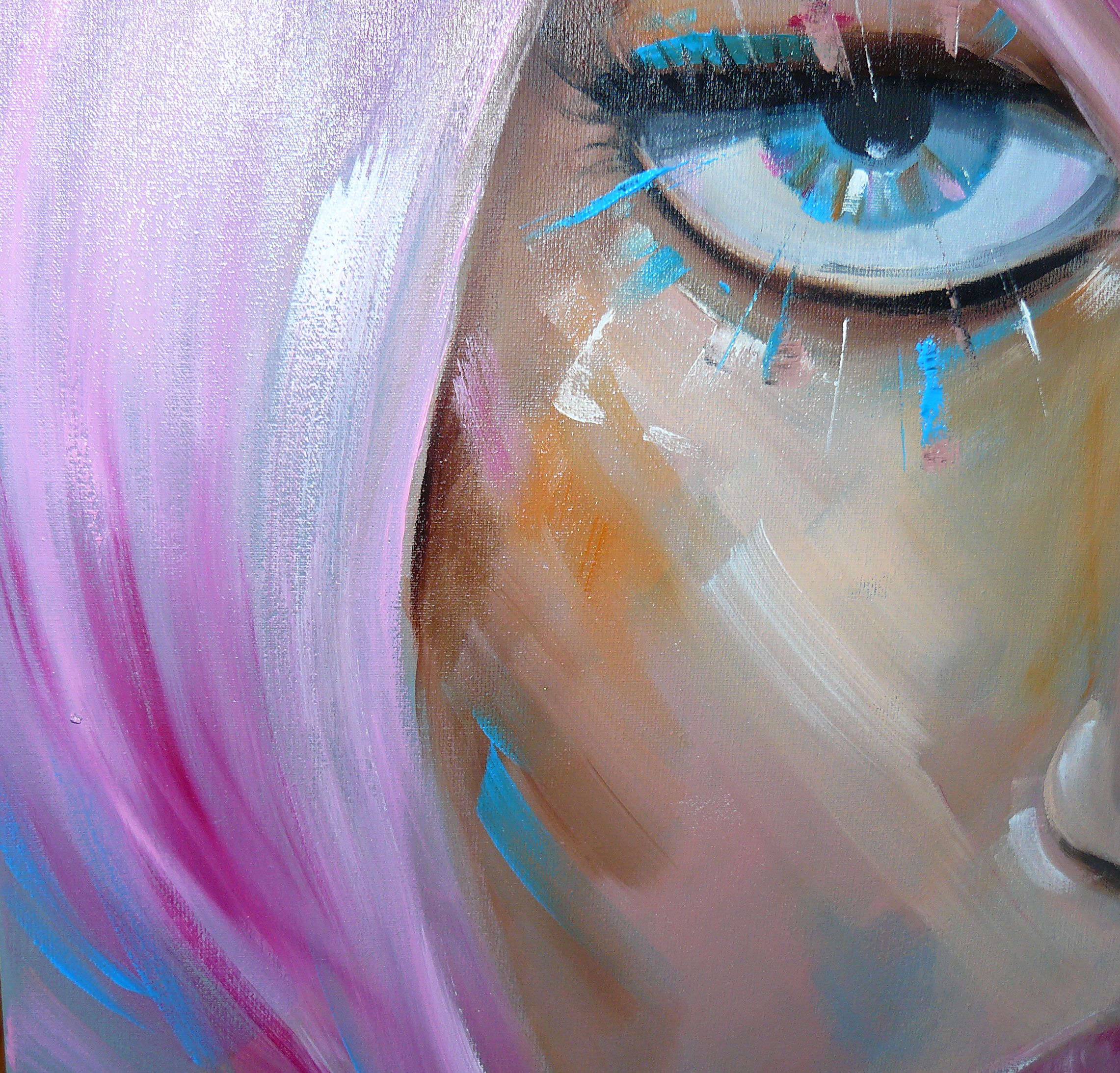 Obraz olejny na płótnie bawełnianym. Nie wymaga oprawy w ramę , ponieważ posiada zamalowane boczne krawędzie. Praca zabezpieczona jest werniksem, sygnowana imieniem i nazwiskiem autorki na odwrocie