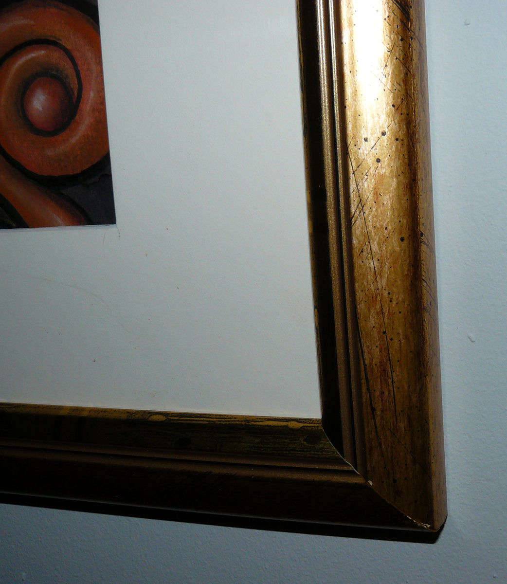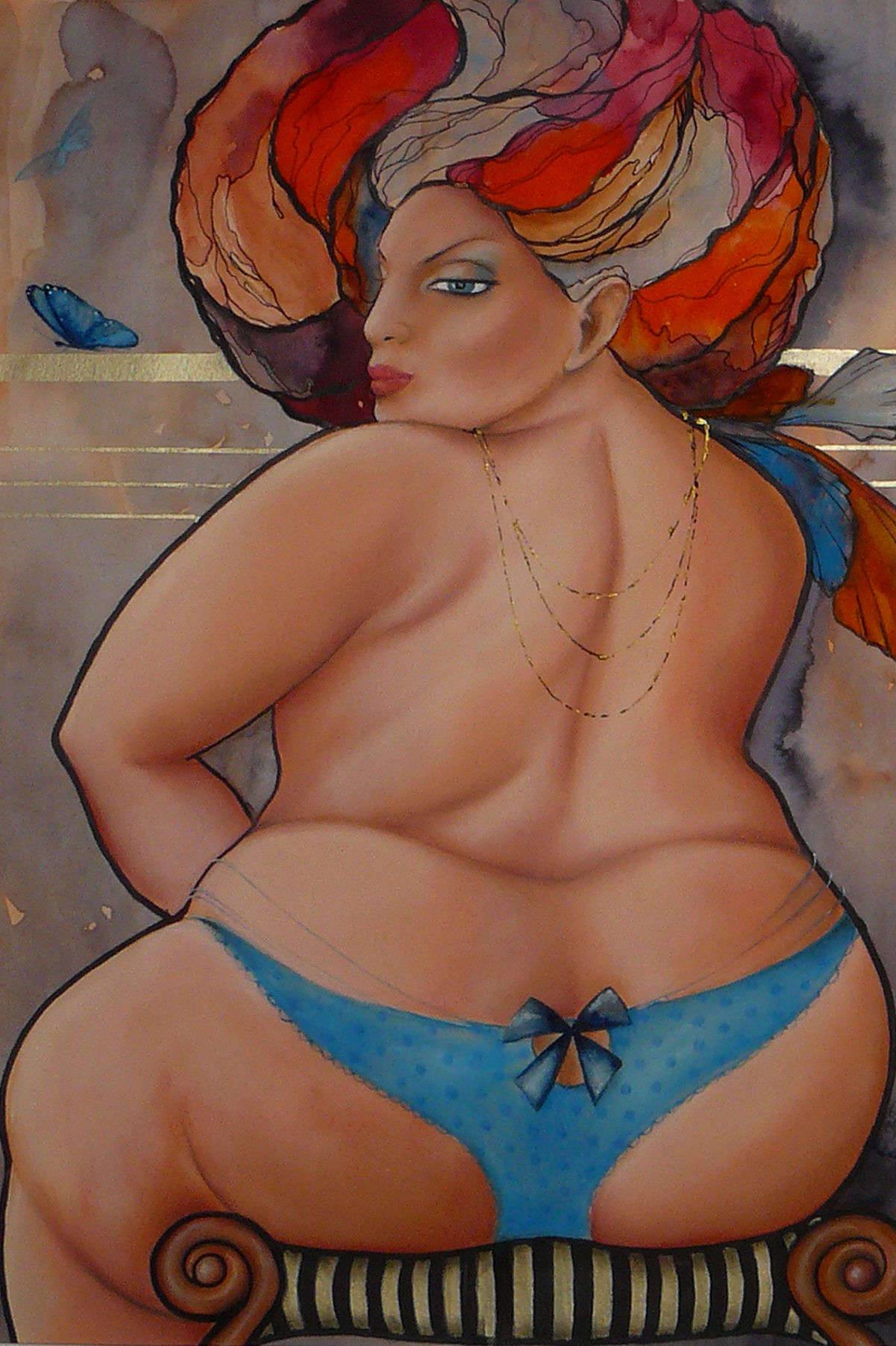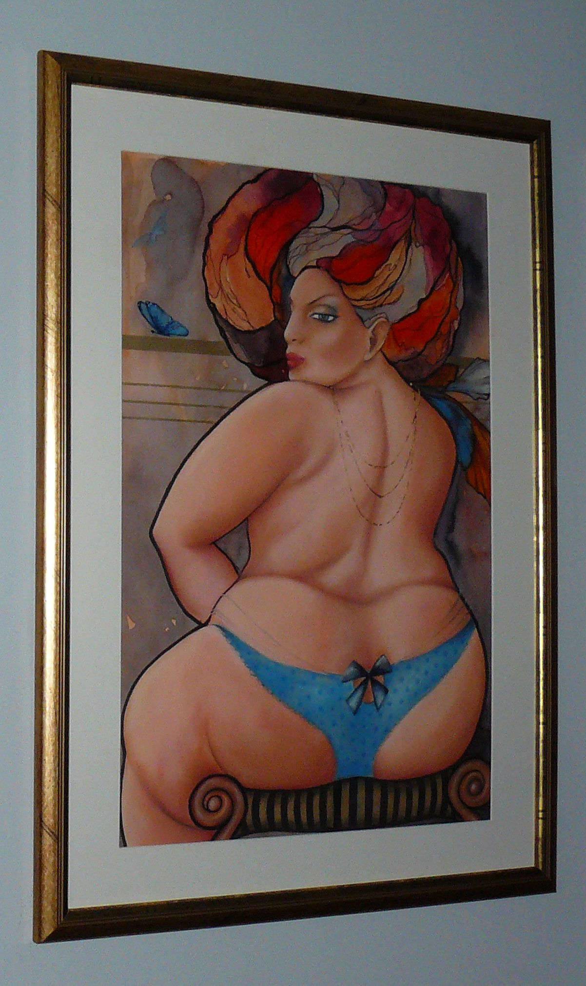 Obraz wykonany techniką mieszaną: akwarela,pastele, tusz na papierze akwarelowym 300 g/m2 Obraz oprawiony w białe passepartout oraz złota ramę .