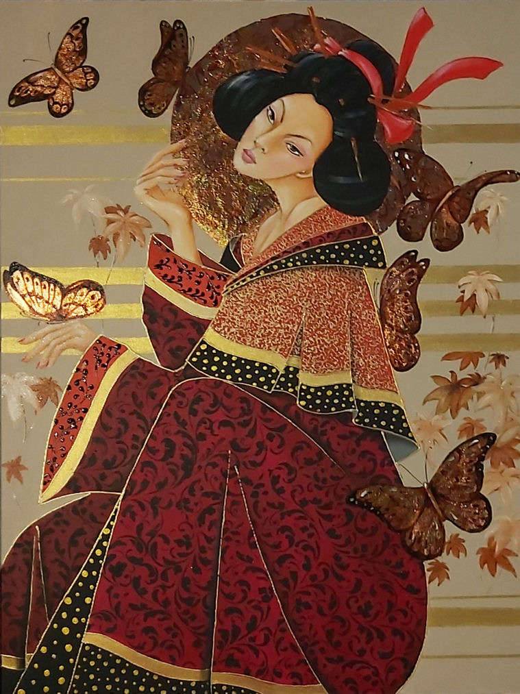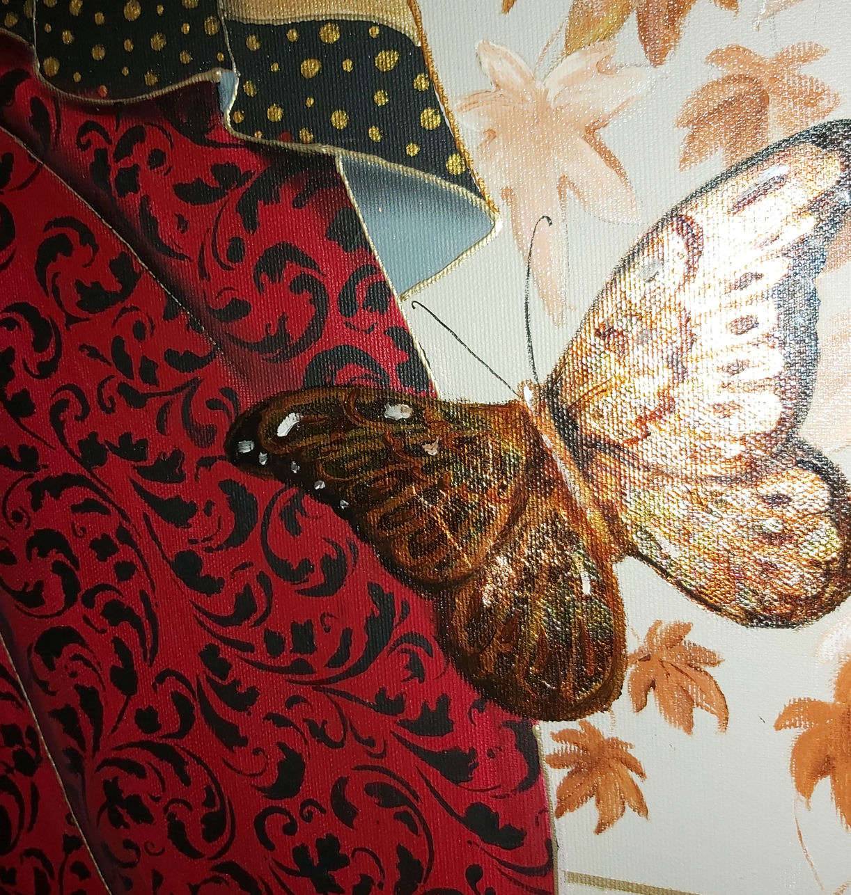 Obraz na płótnie w technice mieszanej - olejno-akrylowy zdobiony szlagmetalem,.