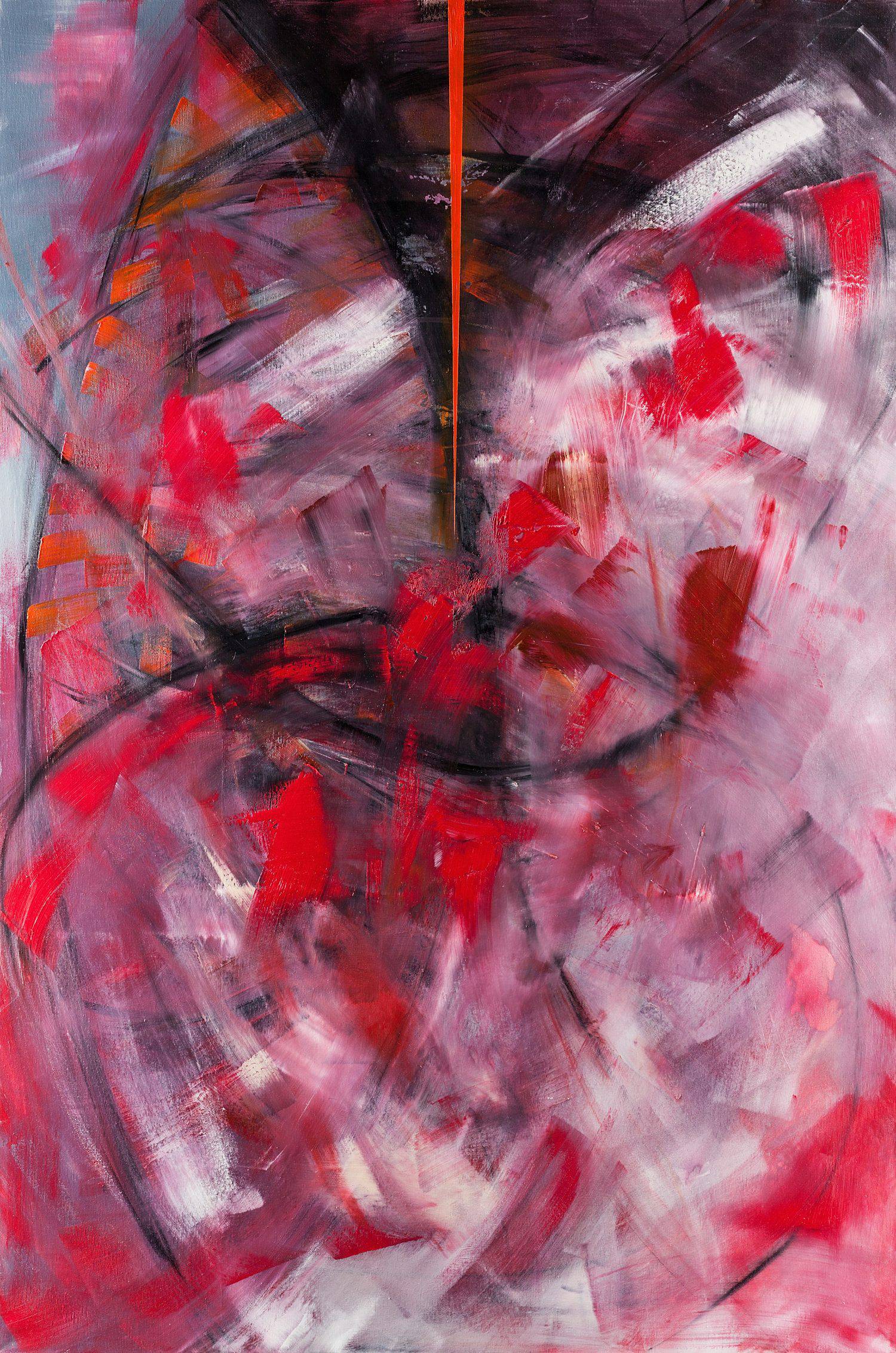 Obraz, który mamy przed sobą, to prawdziwa eksplozja kolorów i emocji. Dominują na nim intensywne czerwienie, które przeplatają się z głębokimi odcieniami czerni i delikatnymi smużkami bieli. Te dynamiczne pociągnięcia pędzla i kaskady farby zdają się tańczyć na płótnie, tworząc kompozycję pełną energii i chaosu, ale też swoistego porządku. Atmosfera tego dzieła jest pełna pasji i intensywności, jakby artysta chciał uchwycić moment czystej emocji. Ten obraz krzyczy, ale w sposób wyrafinowany. Styl tego dzieła nawiązuje do ekspresjonizmu abstrakcyjnego, z wyraźnymi wpływami action painting. Technika, którą artysta zastosował, obejmuje gwałtowne, niemal dzikie pociągnięcia pędzla i zamaszyste ruchy, które nadają kompozycji spontaniczność i żywiołowość. W środku obrazu błyska wyrazisty pomarańczowy akcent, który przyciąga oko jak magnes - a single ray of hope w chaosie kolorów. Odbiorca patrzący na to dzieło może poczuć zawirowanie emocji. Może przypominać to burzę uczuć, która towarzyszy wewnętrznym zmaganiom, ale też momenty czystej radości. „To wygląda jak burza albo taniec tornada!” mogłoby powiedzieć dziecko, zafascynowane wirującymi kształtami. Ja osobiście poczułem się zainspirowany – to obraz, który zmusza do refleksji, ale też daje przestrzeń do snucia własnych interpretacji. Patrząc na tę pracę, można odnieść wrażenie, że artysta próbował uciec od rzeczywistości, szukając czegoś więcej, czegoś głebszego.