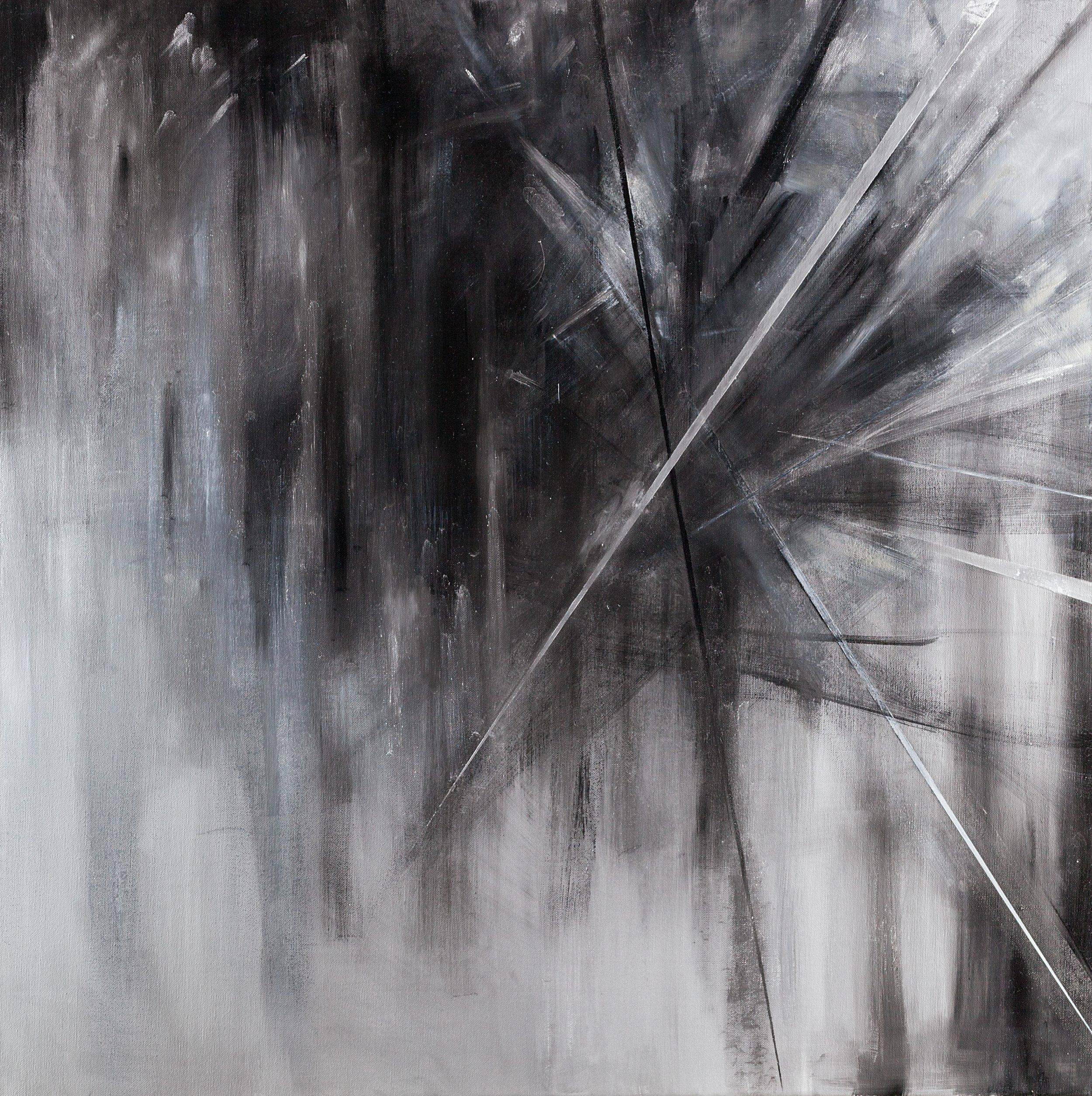 Obraz utrzymany jest w tonacji monochromatycznej, dominują tu odcienie czerni, szarości i bieli. Kompozycja jest dynamiczna, ukośne linie przecinają przestrzeń niczym błyskawice przeszywające nocne niebo. Patrząc na to dzieło, można poczuć pewną niepokój, jakby coś miało się wydarzyć. Artysta użył technik przypominających impresjonizm, z delikatnymi pociągnięciami pędzla, które tworzą mglistą, niemal eteryczną atmosferę. Subtelne smugi farby zdają się tańczyć, tworząc wrażenie ruchu. Ktoś może pomyśleć, że to dance w deszczu, inny widzi w tym burzowy wieczór. Ależ ciekawe jest, jak te różne kształty się na siebie nakładają i współgrają. Co tu się dzieje? To pytanie, które może pojawić się w głowie każdego widza. Niewyraźne przejścia między ciemnym i jasnym tworzą wrażenie tajemnicy. Jest w tym coś magicznego, co przyciąga wzrok. Może to nasza wyobraźnia maluje historię, którą chcemy zobaczyć, bo przecież "każdy widzi co innego". Styl ten przywodzi na myśl nieco modernistyczne podejście, pełne indywidualizmu i introspekcji. Obraz ten doskonale pokazuje, jak black and white mogą być nie mniej ekspresywne niż inne kolory.