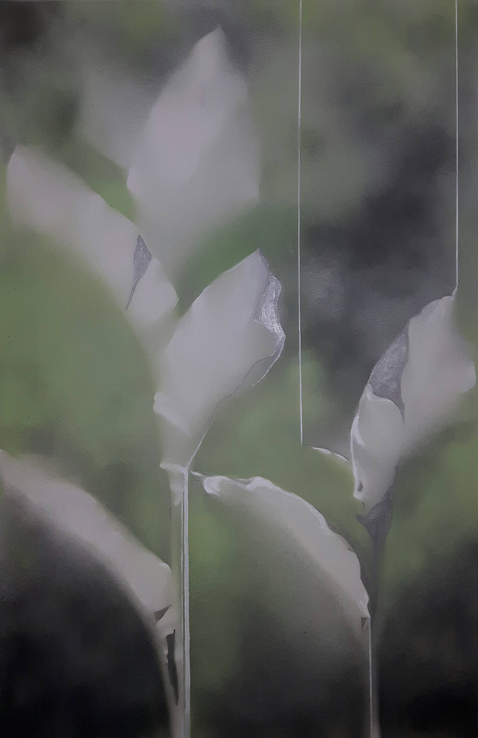 Obraz przyciąga wzrok swoją subtelnością i delikatnością. Dominujące odcienie zieleni i szarości tworzą harmonijną kompozycję, a białe kształty przypominające liście unoszą się na tle jakby mgiełki. Artysta wykorzystał miękkie przejścia kolorystyczne i delikatne linie, by nadać pracy efekt marzenia. To jak spojrzenie przez zamglone okno na ogród pełen tajemnic. Atmosfera jest zarazem spokojna i nieco melancholijna, jakbyśmy znaleźli się w miejscu zawieszonym między snem a jawą. Styl obrazu jest bliski impresjonizmowi, chociaż technika przypomina troszkę airbrush. Te smugi koloru, które wydają się przypadkowe, naprawdę budują skomplikowaną sieć linii i kształtów. Może się zdarzyć, że patrząc długo na ten obraz, poczujemy, jakbyśmy unikali chaosu codzienności i przenieśli się w chwilę spokoju. Czuję się naprawdę zrelaksowany, widząc te kojące barwy. Wow, to jak magiczny ogród! Ciekawe jest to, jak ten obraz może wywoływać różne emocje. Dla jednych może to być poczucie nostalgii, dla innych moment ucieczki do „peaceful” przestrzeni. A co by powiedziało dziecko? Pewnie: te liście wyglądają jak dziwne balony na zielonym niebie! Skoro patrząc na obraz, można się tak wiele poczuć, to chyba udało się artyście uchwycić kawałek magiczną rzeczywistość.