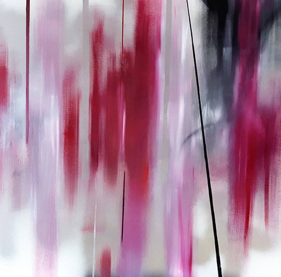 Obraz przedstawia dynamiczną kompozycję z przewagą czerwieni i różu. Pionowe smugi przypominają ślady pędzla, które przecinają płótno z różną intensywnością. Są tam też inne barwy, jak szarości i biel, które dodają kompozycji głębi. Całość sprawia wrażenie ruchu, jakby kolory tańczyły w nieustannym rytmie. Atmosfera jest tajemnicza, może trochę melancholijna, ale z nutą optymizmu. Czujesz, że to coś jak wielki performance, gdzie każdy kolor ma swoją rolę. Styl artysty można określić jako abstrakcyjny ekspresjonizm, z silnym naciskiem na emocję koloru. Technika gry kolorów i form sprawia, że masz wrażenie zanurzenia w tym dziele. Czasem czujesz się, jakbyś był częścią tego chaosu. To trochę mind-blowing. Każda barwa zdaje się opowiadać własną historię, ale nie one mówi ci wszystko wprost. Patrząc na ten obraz, możesz poczuć tej rodzaj wibracji, gdzie radość miesza się z niepewnością. Jakby obrazy próbowały złapać twoje wszystkie emocje w niespokojnym tańcu kolorów. Interesujące, jak różne osoby mogą zobaczyć tu coś innego – jedni powiedzą, że to burza emocji, inni że spokój po burzy. Myślę sobie, że to coś specjalnego. Dziecko mogłoby powiedzieć: patrz, tęcza się zgubiła! To przypomina, jak różnorodny jest świat sztuki i ile perspektyw można z niego czerpać.