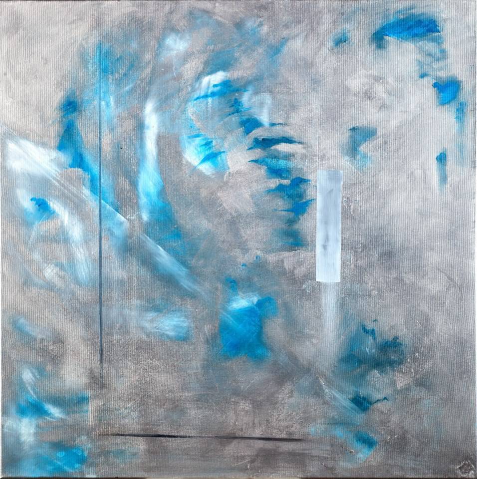 Obraz przyciąga wzrok delikatną grą kolorów. Dominuje tu subtelny miks odcieni błękitu z szarością, które przypominają o porannych mgłach nad jeziorem. Pociągnięcia pędzla tworzą dynamiczną kompozycję, pełną ruchu i energii. Kształty na płótnie są niejednoznaczne, jakby artysta bawił się formą, prowokując naszą wyobraźnię. Atmosfera obrazu jest lekko tajemnicza, niemal eteryczna, jakbyśmy mieli do czynienia z jakimś dreamscape. Styl artysty można by opisać jako mieszankę impresjonizmu z elementami abstrakcji. Technika, której użył, pozwala na stworzenie wrażenia płynności, jak gdyby wszystko było błyskawicą uchwyconą na moment w kadrze. To, co widzisz, to nie tylko chaos, ale też swoisty porządek ukryty w nieładzie. Dla siedmiolatka obraz może przypominać zorzę polarną "zatańczoną" przez chmury. A może płatki śniegu? Takie abstrakcyjne podejście pozwala na różne interpretacje, zależne od nastroju i doświadczeń widza. Dla mnie osobiście to trochę jak spojrzenie w przyszłość, nieco zamgloną, ale pełną obietnicy. Wow, tak, to jest zdecydowanie to feeling, o którym myślę. Obraz skłania do refleksji i prowokuje emocje, będąc jednocześnie swoistą zagadką do rozwiązania.