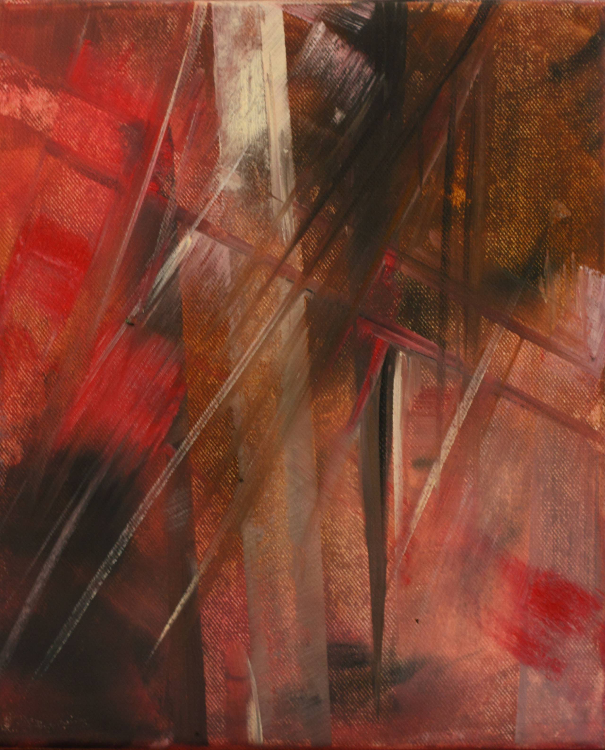 Obraz tętni żywymi kolorami czerwieni i pomarańczy, które jakby chciały wyskoczyć z płótna. Dominują mocne, skośne linie przecinające się nawzajem, wyznaczające rytm i dynamikę kompozycji. Przypomina to taniec płomieni, które to zbliżają się, to oddalają od siebie w chaotycznym chaosie. Przestrzeń pomiędzy liniami wypełniają ciepłe brązy, tworząc poczucie głębi i przestrzenności. Atmosfera dzieła jest pełna niepokoju, niemniej jednak fascynuje swoją energią. Stylem artystycznym widać tutaj abstrakcyjne podejście, typowe dla ekspresjonizmu, z naciskiem na emocje. Obraz wyraża chaotyczne emocje, przypominając wizualny "heartbeat". Może wywoływać w widzu mieszane uczucia – czasem zachwyt, czasem zamyślenie. To arcydzieło, które można oglądać godzinami i za każdym razem odkrywać coś nowego. Niesie ze sobą emocje, które przywodzą na myśl, jak to jest być w samym środku burzy emocji. Widać tu użycie zdecydowanych pociągnięć pędzla, co nadaje odrobinę drapieżnego charakteru. Ciekawe, co myśli dziecko patrząc na taki obraz: "Ooo, to wygląda jak ognista burza!". Bez zbędnej poprawności językowej nie boję się powiedzieć, że to dzieło jest porywające i niebanalne.