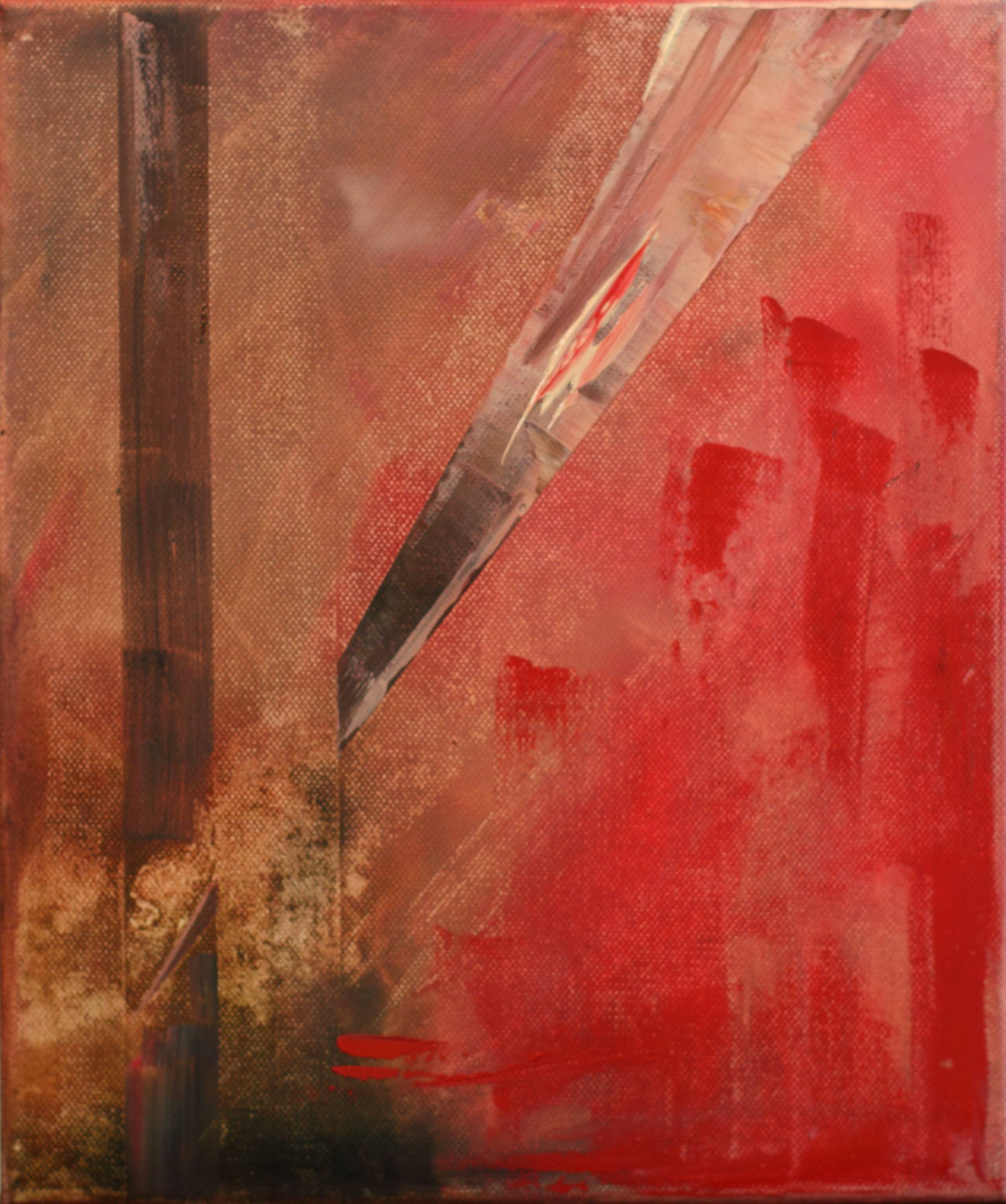 Obraz emanuje ciepłymi odcieniami czerwieni i brązu, przyciągając wzrok dynamicznymi pociągnięciami pędzla. Kompozycja jest asymetryczna, z ostrym trójkątem przecinającym płótno, co nadaje dziełu charakteru. Te kolory jakby żyją własnym życiem, plamy barwne zlewają się, tworząc wrażenie ruchu. Całość sprawia, że atmosfera jest tajemnicza, jakby coś się miał wydarzyć zaraz. Czuć napięcie, które po prostu wisi w powietrzu. Styl zbliżony do abstrakcji, artysta bawi się fakturą i gra kontrastem. Przywodzi to na myśl chaos i harmonię w tym samym momencie, używa pewnych technik malarskich, zwłaszcza impasto, który nadaje tekstury. Obraz może prowokować różnorodne emocje u odbiorcy – dla jednych będzie to niepokój, dla innych fascynacja. A ja myślę: co za energia! Dla 7-latka to by było po prostu "wow, ogień na płótnie". Zwykłe pociągnięcia pędzla mogą przypominać niedokończoną historię, a nieoczekiwane przełamywanie form sprawia, że to jest „edgy”. Czy nie ciekawi, co jeszcze można tu dostrzec? Takie malarstwo intryguje i skłania do refleksji.