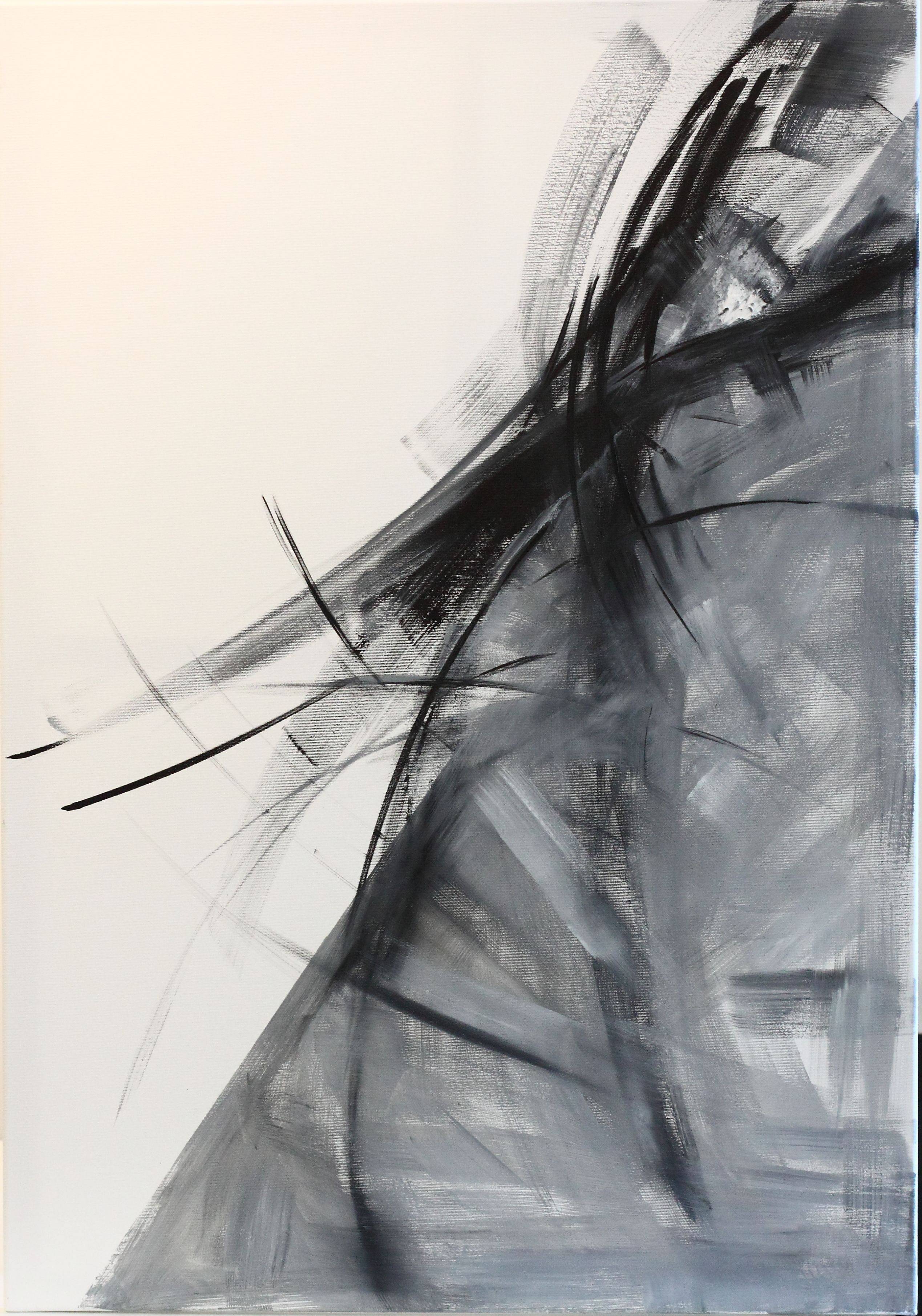Na tym obrazie dominuje dynamiczna gra czerni i szarości na tle czystej bieli, która jest jakby zaproszeniem do ruchu. Linie są nieokreślone, jednocześnie ostre i rozmyte, co tworzy wrażenie jakby ciągłego ruchu, może tańca. Kompozycja zdaje się być chaotyczna, ale w tej chaotyczności kryje się porządek i rytm. Atmosfera obrazu jest pełna napięcia, ale i swobody, przypomina trochę burzę emocji. Styl artysty to abstrakcyjny ekspresjonizm, używający grubo nakładanej farby i energicznych pociągnięć pędzla, które są jakby zagrane w rock 'n' rollowym stylu. Czuję, że obraz mówi o wewnętrznym dialogu, o walce i harmonii naraz. Może nawet... o poszukiwaniu siebie. Patrząc na niego, można pomyśleć: "czy to nie odzwierciedlenie mojego dnia codziennego?" Ma to coś z głębi, którą można dostrzec tylko po odrobinie introspekcji. Today was a good day, powiedziałby ktoś patrząc na ten obraz. Pośród całego tego zamieszania, odnajdujemy chwilę refleksji, moment zastanowienia. Dziecko widząc to, krzyknie pewnie: "To wygląda jak wielki wiatr!" i w tym dziecięcym spojrzeniu kryje się jakaś prawda.