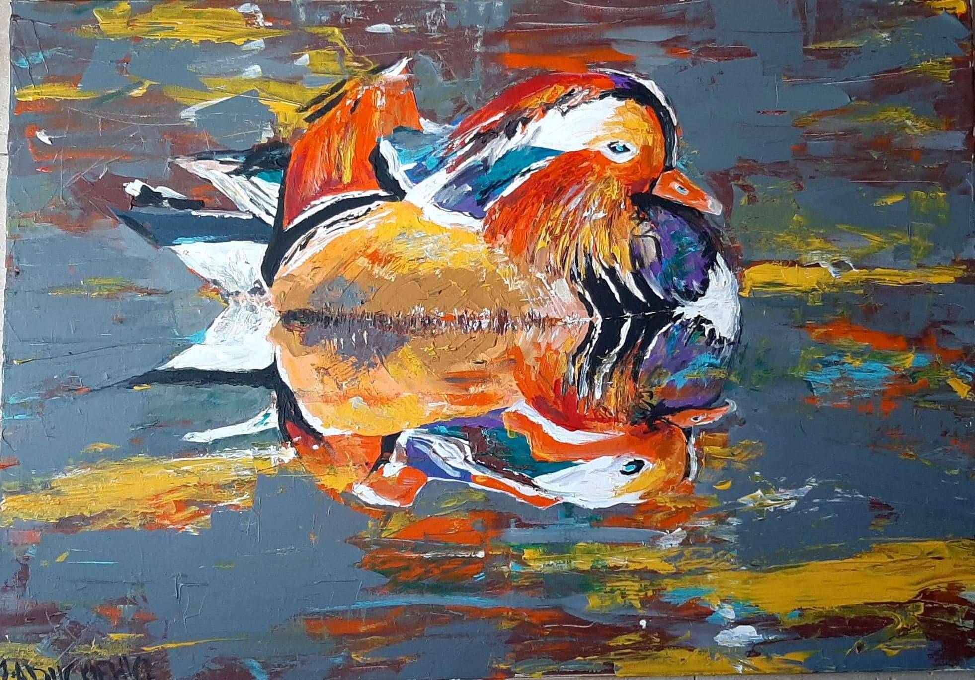 Widoczna faktura, gruba warta farby. Boki są kontynuacją obrazu. Praca jest sygnowana podpisem I.Aduckiewicz.Obraz jest dostępny.