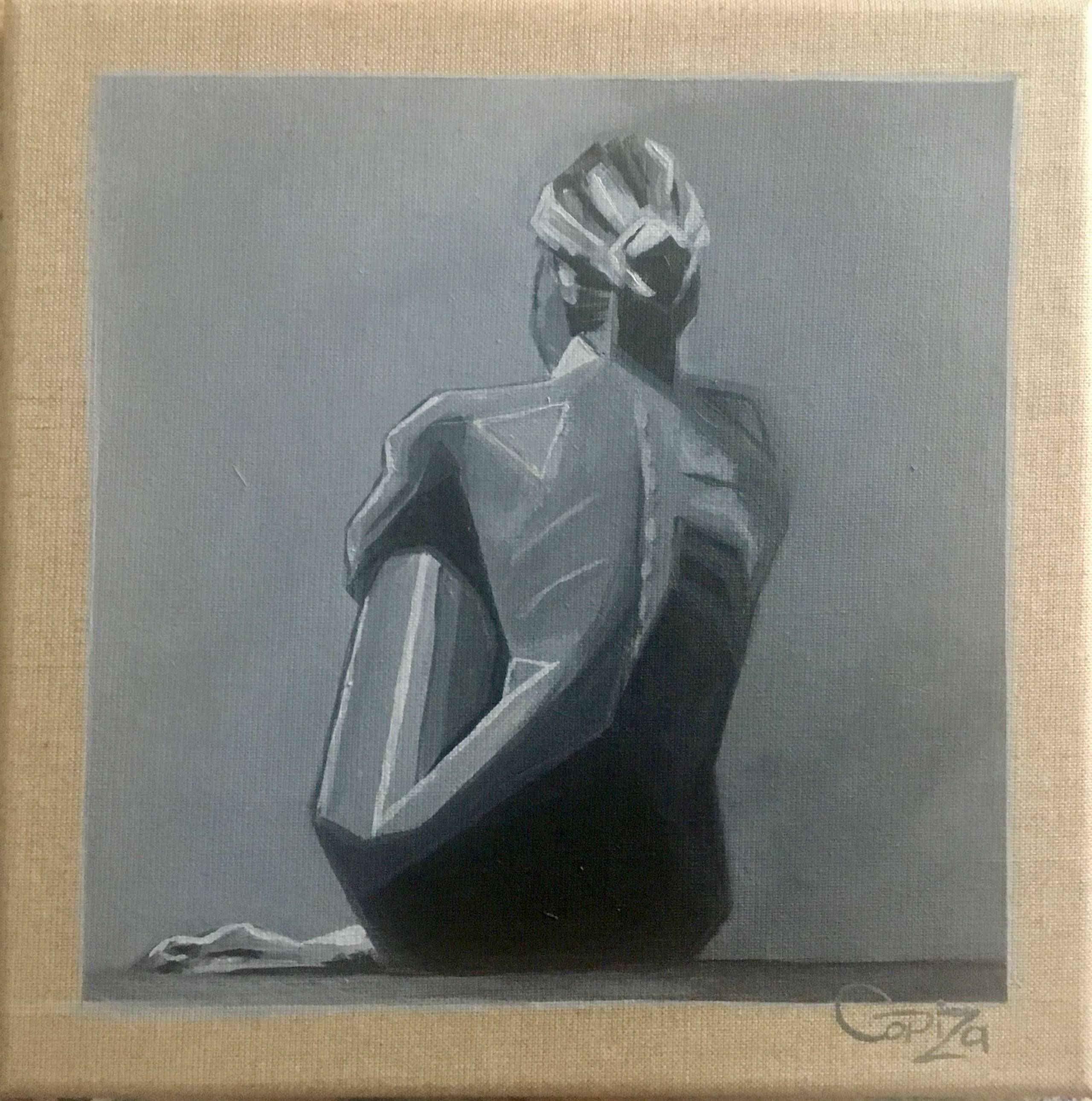 Obraz pochodzi z serii Figury - są to monochromatyczne, czarno-białe akty kobiece, które fragmentarycznie nawiązują bezpośrednio do figur geometrycznych. Boki obrazu niezamalowane - pozostawiona struktura i kolor zagruntowanego żywicą płótna, daje dodatkowo surowy ciekawy efekt naturalnego obramowania. Serdecznie polecam.