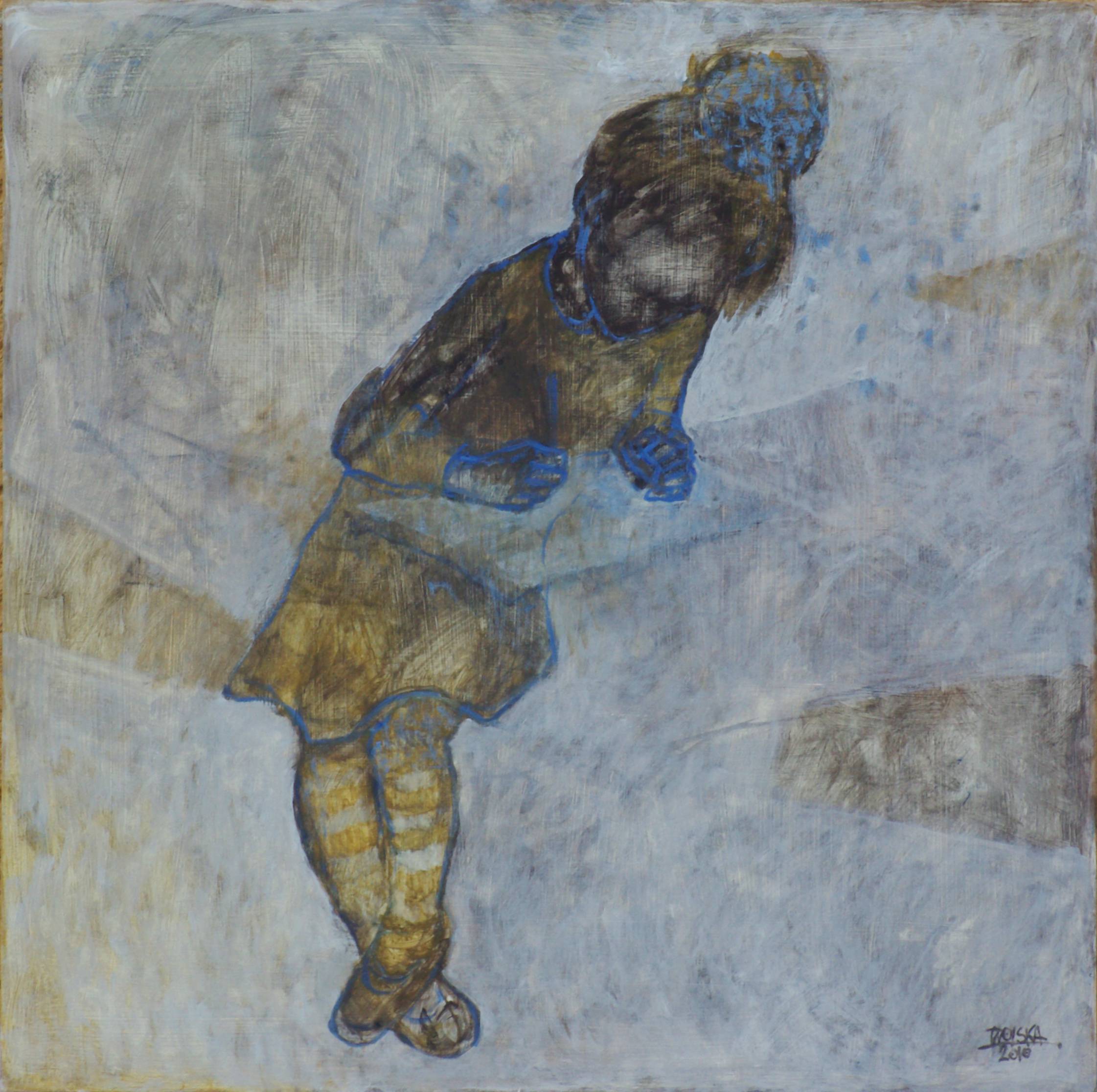 Akryl na płycie, 90x90, werniksowany, sygnowany, oprawiony w prostą, drewnianą ramę malowaną na ciemny brąz