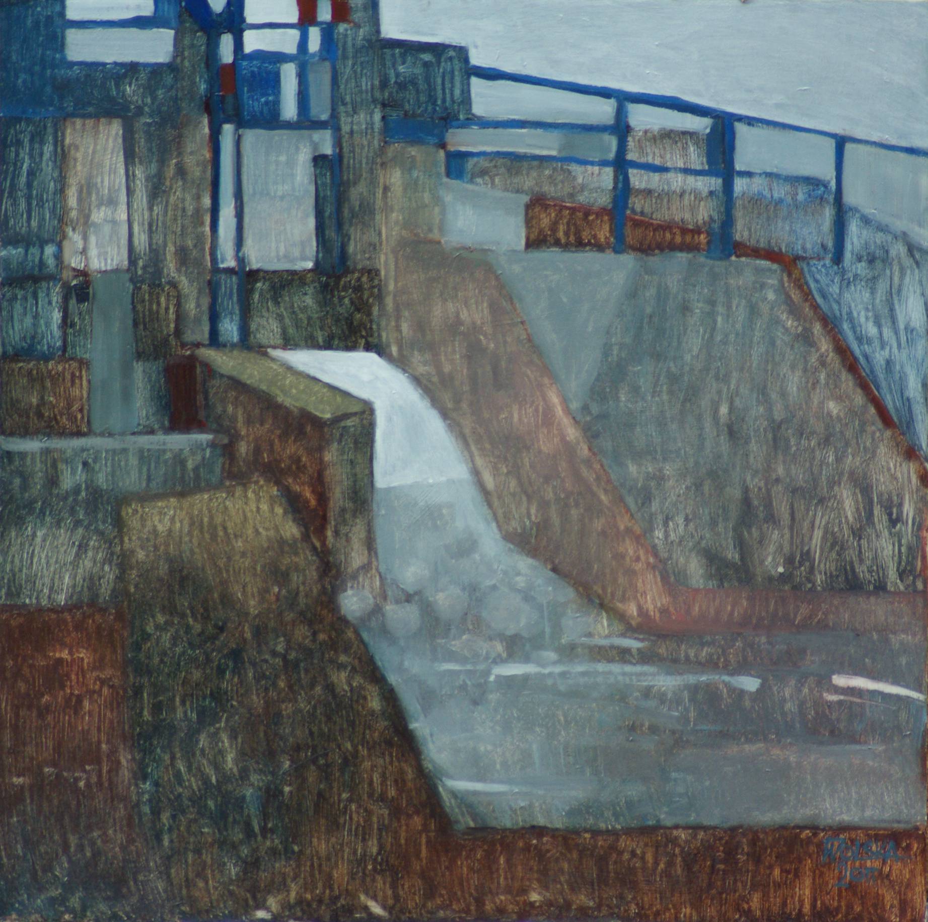 Ole na płycie, 70x70, sygnowany, nie werniksowany, nie oprawiony - jest możliwość oprawienia w prostą, drewnianą ramę. Rok powstania 2011. Obraz przedstawia wodospad za młynem w Marianowie. Malowany w plenerze.