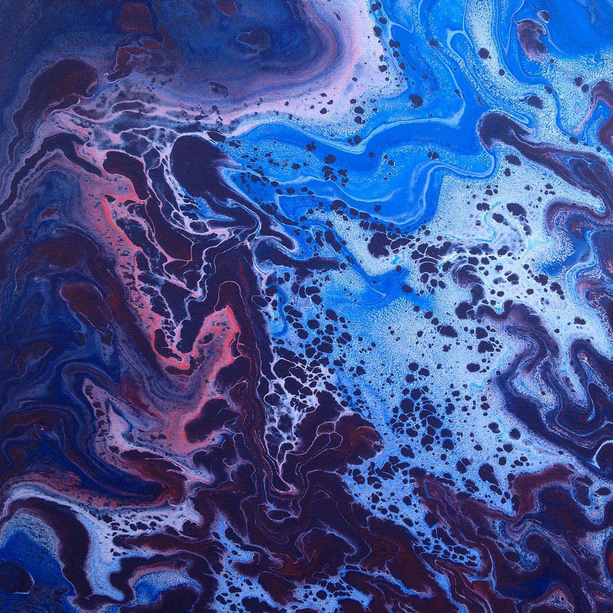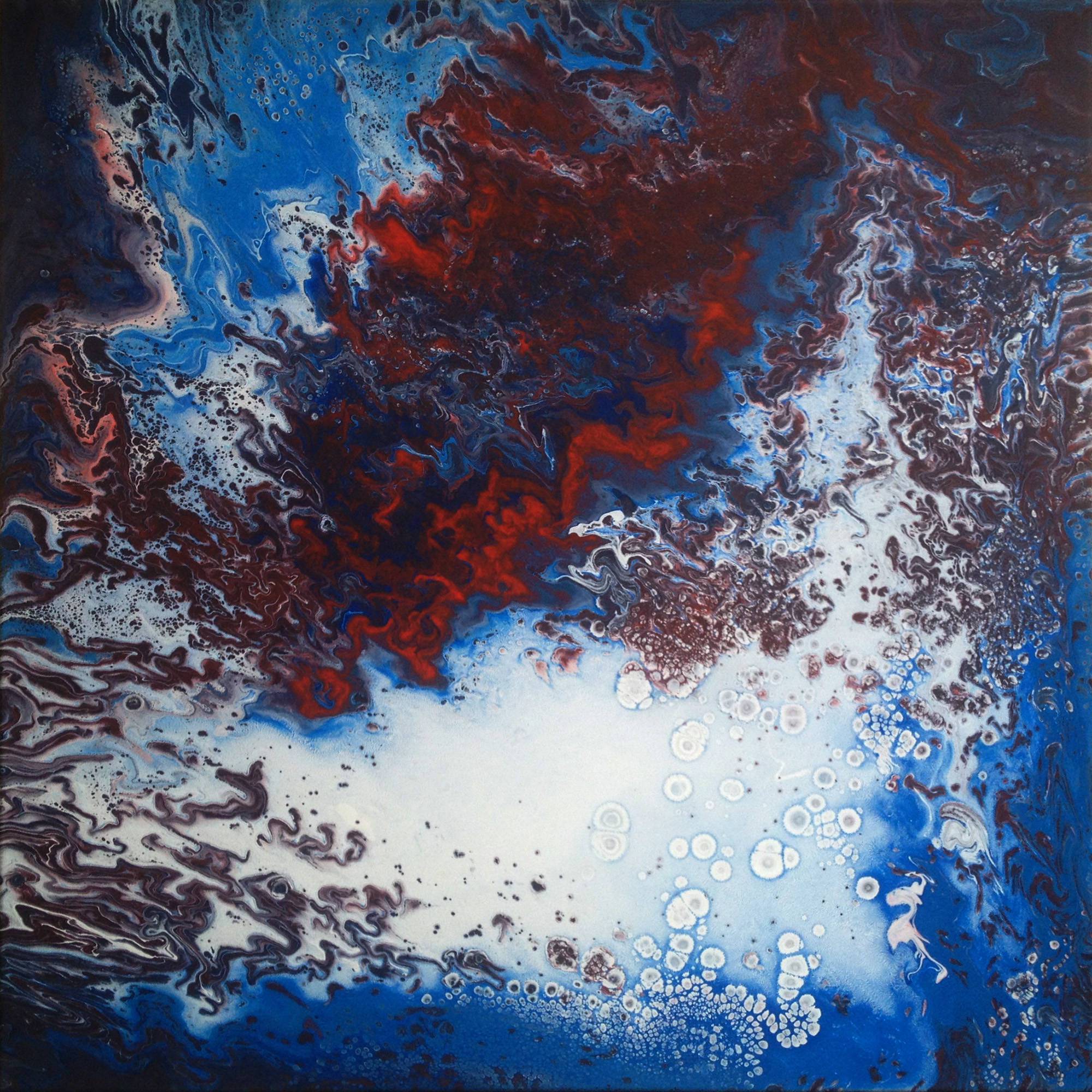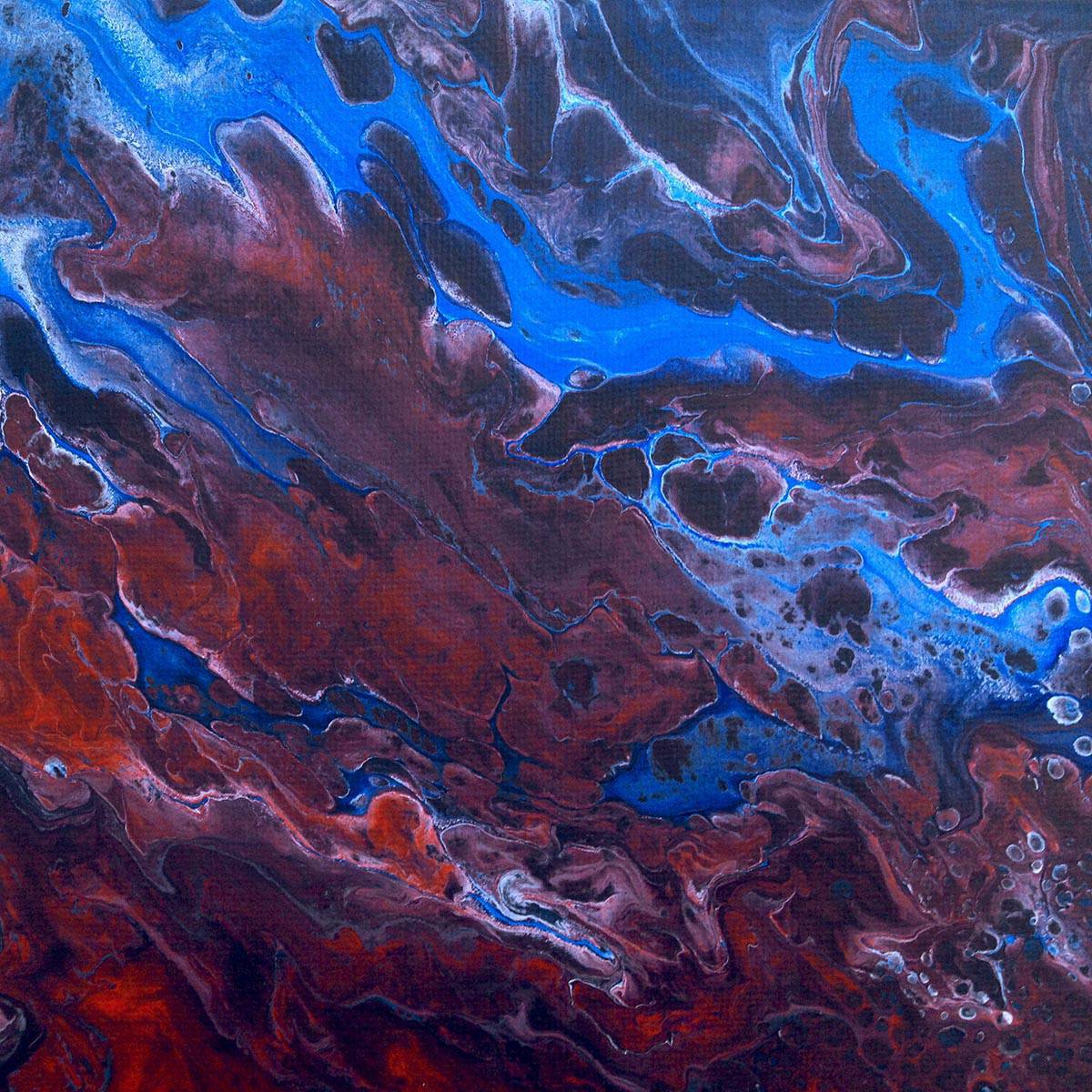 Obraz zachwyca dynamicznymi wirami kolorów, gdzie głębokie odcienie niebieskiego splatają się z intensywną czerwienią. Wygląda to trochę jak eksplozja w kosmosie, pełna energii i tajemniczości. Kompozycja jest chaotycznie piękna, przypominając abstrakcyjną mapę emocji zatopioną w czynnikach nieprzewidywalnych. Atmosfera dzieła jest zarówno przyciągająca, jak i niepokojąca. Czujesz w niej pewnego rodzaju burzę, może nawet sztorm na morzu niewiadomego. Artysta zastosował tutaj technikę pouringu, gdzie farby płynnie mieszają się na płótnie, tworząc niepowtarzalne wzory. Taka swobodna technika dodaje dziełu organiczności, przypomina mi zabawy z kałużami. "It’s like a dance," pomyśleć można. Obraz wywołuje wiele emocji, od zachwytu nad kolorem do pewnej refleksji nad ludzką duchowością. Patrząc na to dzieło, można poczuć, jakby czas na chwilę stanął w miejscu. Czy to właśnie chaos, czy spokój w nim znajdujemy? Widząc ten obraz, nie przestaję się zastanawiać, co jeszcze w nim odkryję. Ale mama, te kształty są jak dżinsy! Zachwyca i zmusza do myśli, które krążą gdzieś na skraju racjonalności. Fascynujący mix różnych stylów i technik, które tworzą niesamowity spektakl na małej scenie płótna.