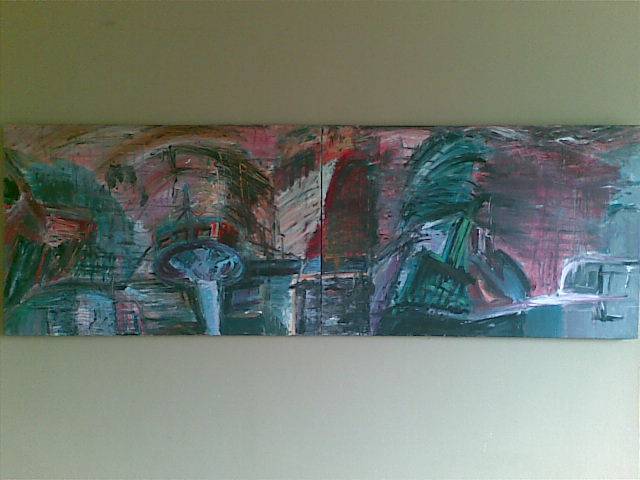 Obraz budowanego placu w Berlinie, który dzieliła granica. Pozostała z niej tylko mała wieża obserwacyjna. Cały cykl to siedem obrazów ukazujący ówczesny Berlin na 2 dni przed 11/09/2001
