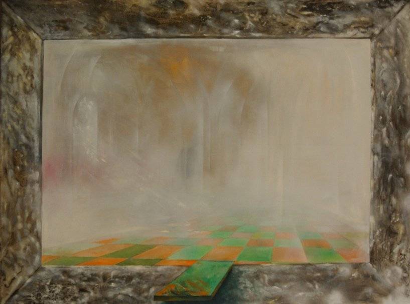 Obraz emanuje niezwykłą tajemniczością i subtelnym urokiem. Dominują w nim miękkie odcienie brązów i szarości, które tworzą mglistą atmosferę, rozmywając kontury przestrzeni. Widać wyraźnie kolorowe kwadraty podłogi w odcieniach pomarańczu i zieleni, które nadają kompozycji intrygujący kontrast. Kompozycja sugeruje jakąś ukrytą historię, a może nawet tajemniczą opowieść. Nastrój obrazu jest senno-zagadkowy. Można poczuć jakby się wchodziło do innego świata, gdzie rzeczywistość miesza się z marzeniami. Styl artysty zdaje się być impresjonistyczny, choć dostrzegalne są też elementy realizmu. Warstwy farby są nakładane z delikatnością, która sprawia, że wszystko wydaje się jakby skąpane w mgle. Dziecięca wyobraźnia może podpowiedzieć, że to magiczny pokój z historia w podłodze. Technika użyta w obrazie wskazuje na dużą biegłość i finezję malarską, artysta z łatwością manipuluje kolorami i światłem, aby wywołać wrażenie mystery i nostalgia. Ciekawie jest pomyśleć, co the artist chciał nam przekazać, zostawiając tyle niedopowiedzeń. Obraz może wywoływać w odbiorcy refleksję nad przemijaniem i pięknem ulotnych chwil. Jest coś hipnotyzującego w tej kompozycji, co sprawia, że chce się na nią patrzeć bez końca. Może to nostalgia za czymś nieuchwytnym, a może nadzieja na odkrycie nowego świata ukrytego w zakamarkach naszej wyobraźni.