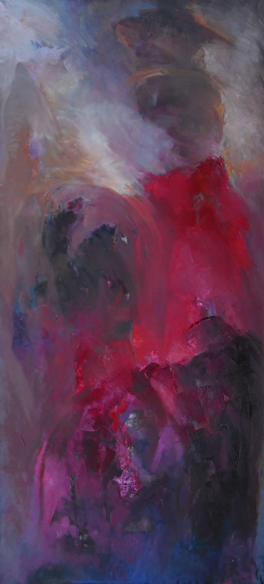 Obraz emanuje tajemniczością i intensywnością dzięki bogatej palecie ciemnych kolorów. Dominują odcienie czerwieni, purpury i czerni, które mieszają się, tworząc dynamiczną kompozycję pełną ruchu. Grube pociągnięcia pędzla i rozmyte kontury wzmacniają wrażenie chaosu. Jakiś taki dreamlike feeling, zupełnie jakbyś patrzył na coś z innego świata. Artysta zastosował technikę impasto, dzięki czemu tekstura farby jest wyczuwalna, nadając obrazu trójwymiarowości. Atmosfera obrazu jest nieco mroczna, ale jednocześnie fascynująca. Przyciąga jak magnes, nie pozwalając oderwać wzroku. Istnieje w nim coś nieuchwytnego, coś, co zmusza do refleksji i zanurzenia się w swoich własnych myślach. Może wywołać uczucie niepokoju, ale i ciekawości co dalej. Wyzwala wewnętrzne emocje, sprawiając, że odbiorca zaczyna snuć własne historie, zasłuchany w szept dzieła. Czy to może być coś więcej niż tylko abstrakcja? Moje ulubione kolory to czerwony i niebieski. Sztuka abstrakcyjna to takie puzzle dla umysłu, a ten obraz jest tego doskonałym przykładem. Każdy szczegół wydaje się mówić: odkryj mnie, zrozum ducha, który się tu kryje. Jedno jest pewne, ten obraz pozostaje w pamięci na długo.