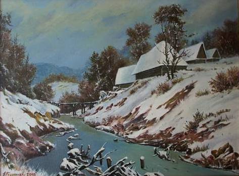 Jacek Stryjewski - Pejzaż zimowy z potokiem